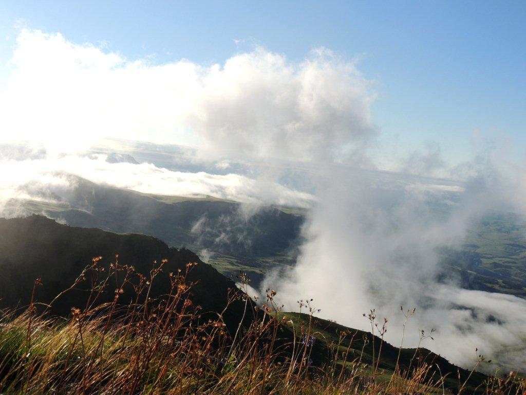 Morning broke misty, damp and cold. No magic sunrise, however a2 hardy souls arose early to witness the new day starting. Later the mist started to lift, and great mystical views of the plains far below could be seen through the mist patches.
