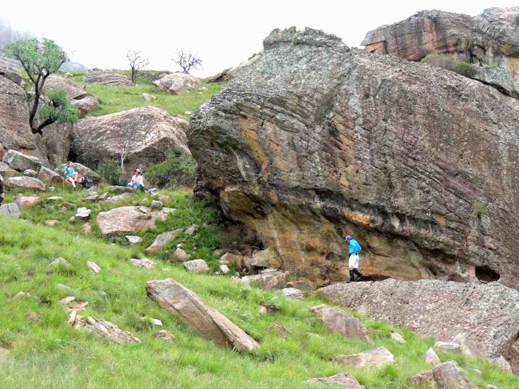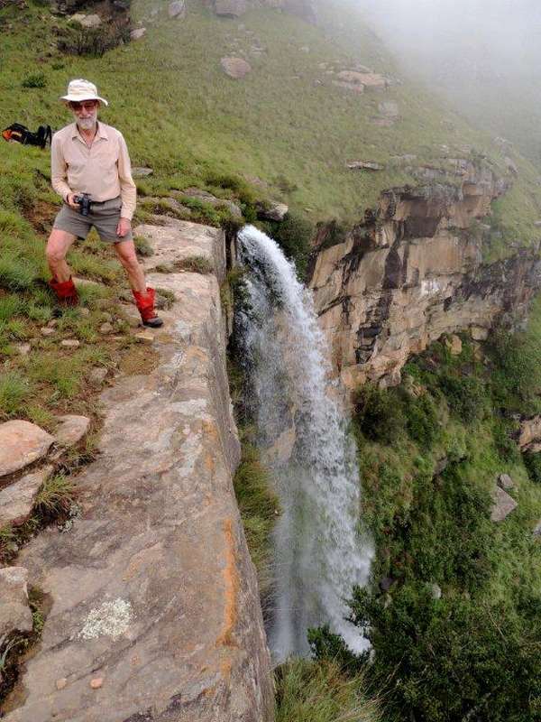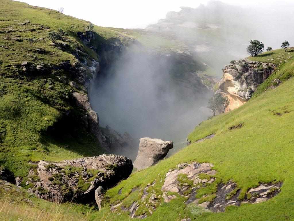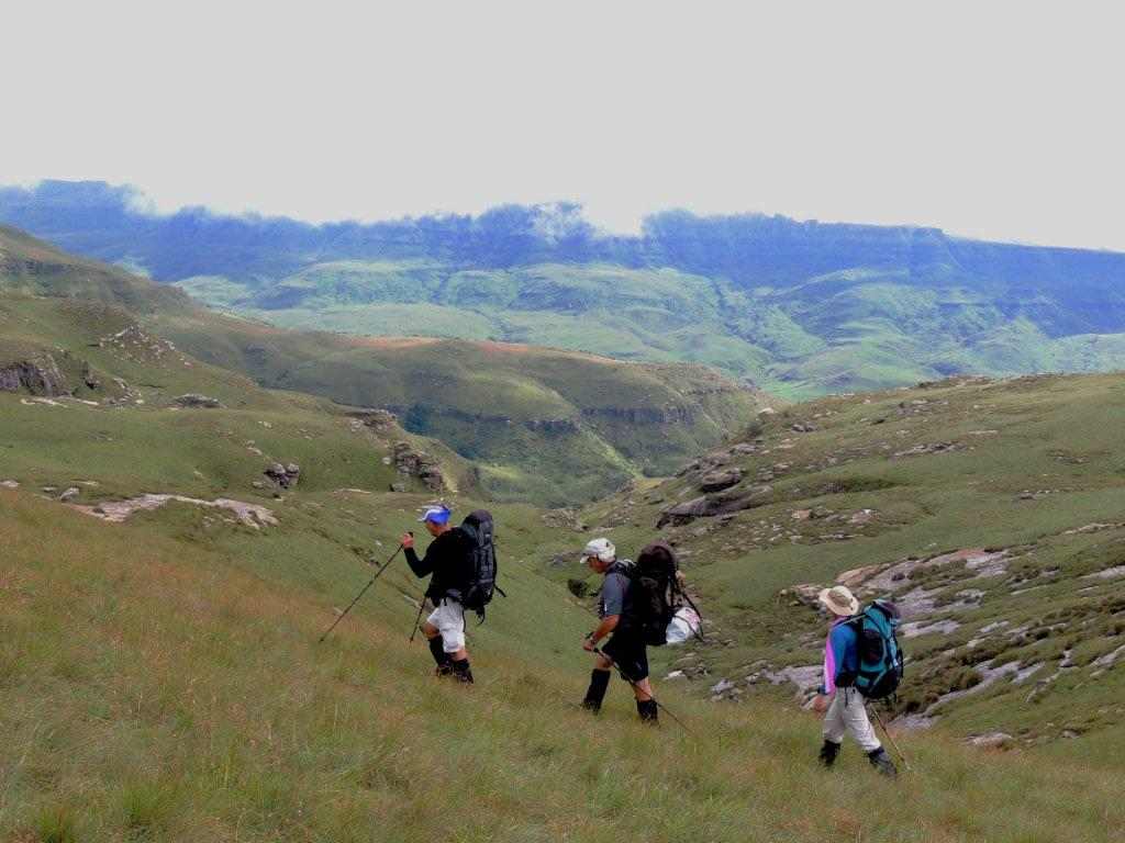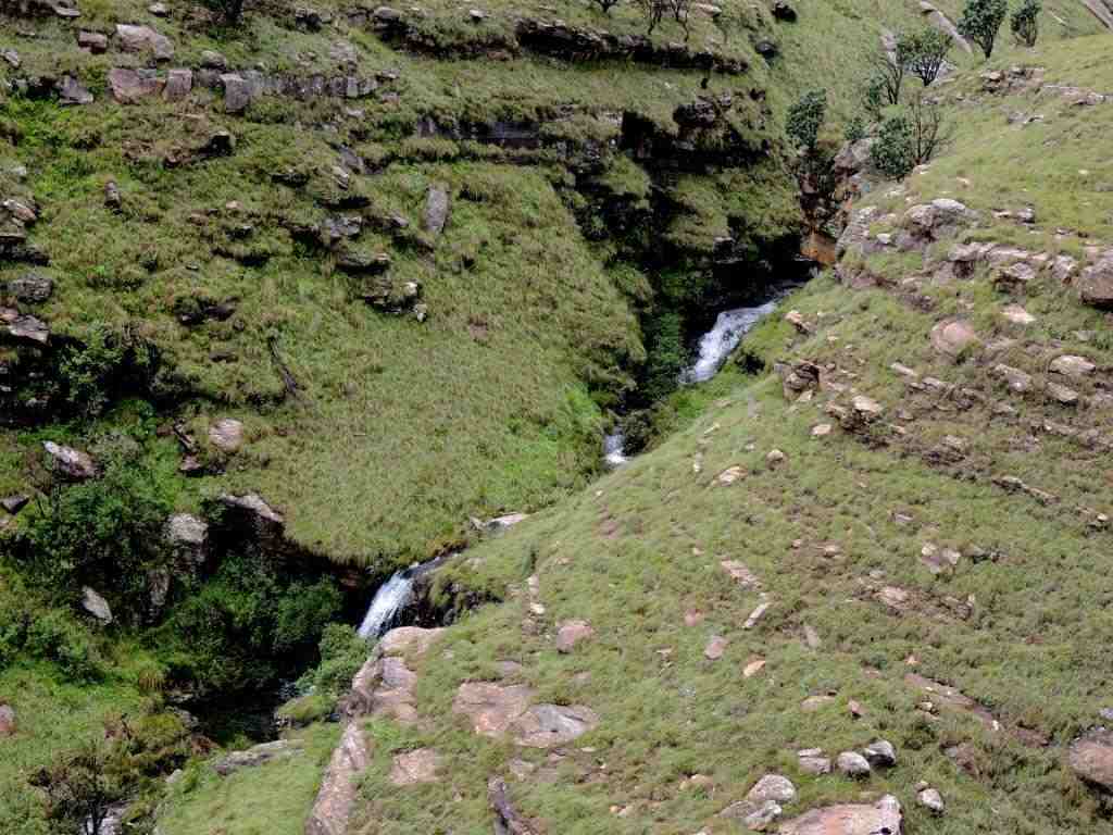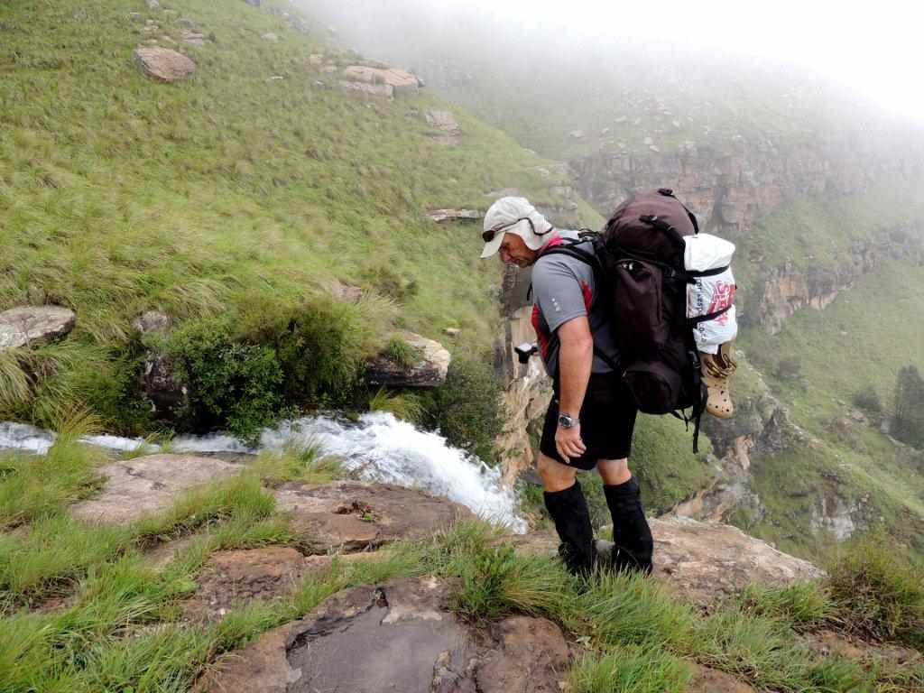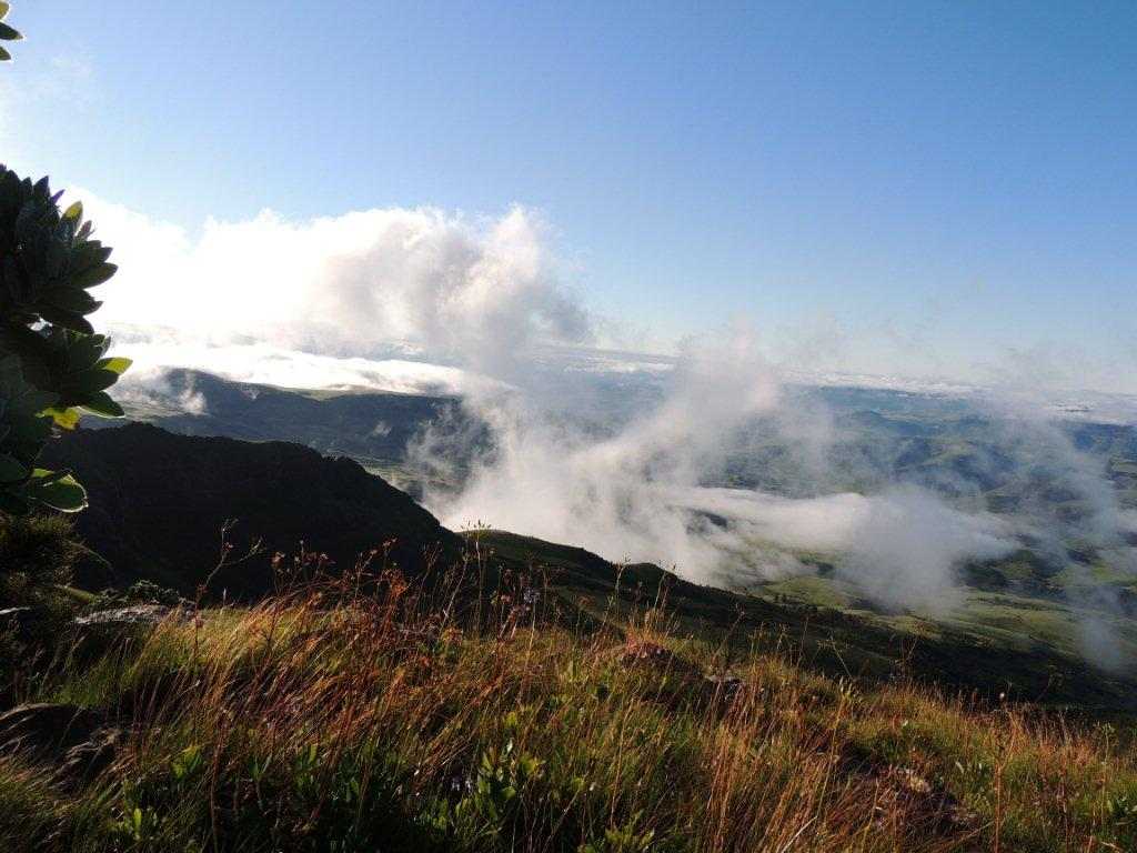 After summiting, the mist seemed to lift and far down the opposite valley we could make out where we would find our cave. Walking happily through the lush green grass , with not a care in the world – the cave was in sight – we were safe from weather for now, I stepped across something that reared up between my legs. A leap of faith into the unknown took me clear of a rearing mountain cobra ( or Rinkhals), that was as surprised as I was on this unexpected intrusion into his life. Everybody was calm , and after the usual niceties and photos were exchanged, we went our separate ways.