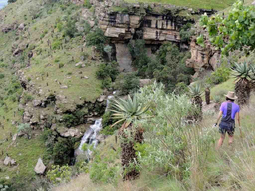 We diverted from our path , and dropped further down into the valley to visit a totally different ecosystem to that in which we had spent the last 2 days. A low area of great old tall aloes, and other drier type plants that had found a niche here. After some rewarding exploring , we headed back along the cliff side to find a lunch spot, and a new way back to the cars.