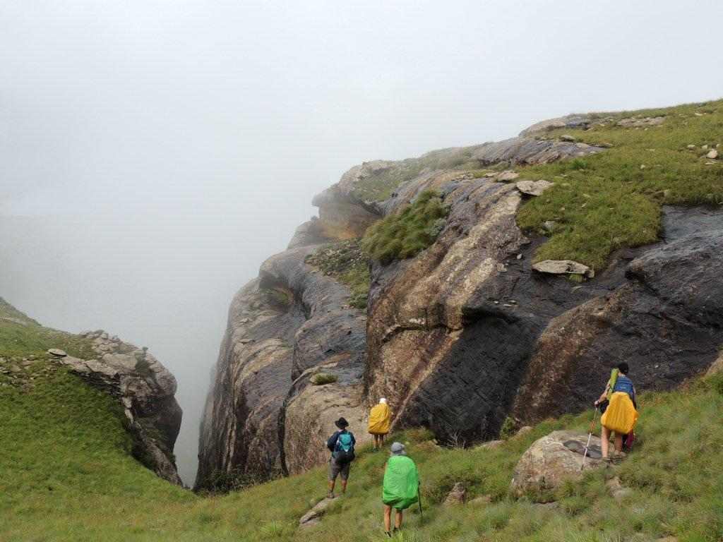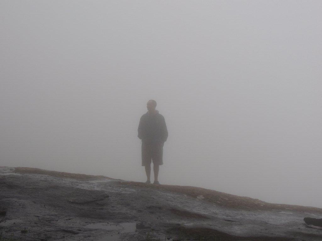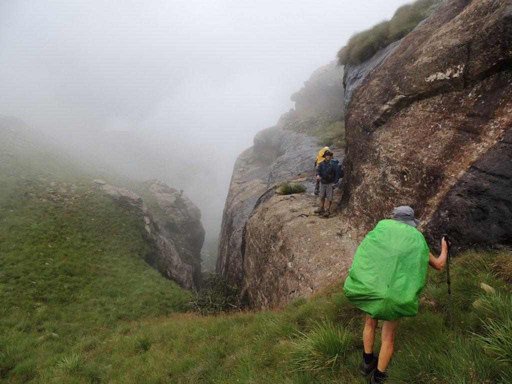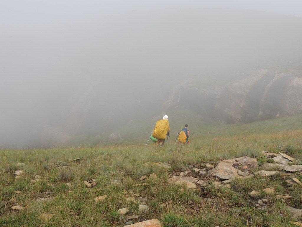 The cave was damp, wet, cold and misty – not the ideal place to sleep. The damp mist kept on rolling in , and all our clothes and gear was damp and a bit wet. Views from the cave were nil.