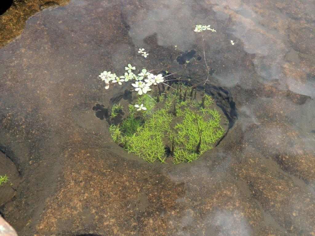 The weather was good, but hot, and the weather forecast advised of a small rain in the late afternoon, and more for the next afternoon. The climb is a long ongoing climb, but with good weather, no rush – no rain !!, an easy pace was taken. Rest stops were frequent, and ample time given to admire the view far away, and some beautiful water plants in pools that would soon be dry. There the seed would lie and wait for the next rainy season to come, germinate, and bring forth life again. However , up in the sky, the clouds continued to build, and soon to produce a great mid summer day storm – of which were did not take any cognizance over.
