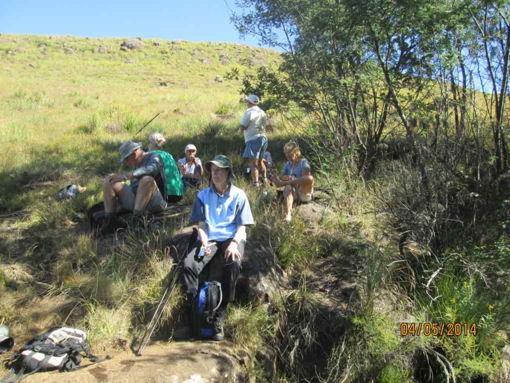 The 10 luckiest members of the Midlands Hiking club spent Sunday 4th May at Tillietudlem Trout and Game Farm. Hot coffee and tea awaited our arrival and with running repairs done to a hiking boot we finally got on our way. Wesley and Sanele showed us the route and asked for any special interests. Raptors were mentioned, and no sooner had we got under way when a pair of fish eagles was spotted. Sanele confirmed that they raise a chick every year. On the way home a Bateleur eagle followed the group, perhaps hoping to be invited for lunch. We passed the gorgeous nguni herd who seemed perfectly happy to share their piece of paradise with wildebeest and eland.