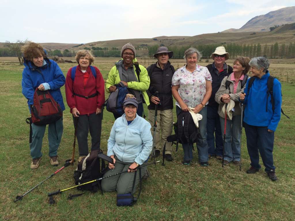 Ten Midlands hikers met at Piggly Wiggly, bright and early with sunshine and blue skies. We welcomed new member Thandiwe Nkambule on her first hike. We drove up the R103 to Nottingham Road and then took the Loteni road to the Kamberg. Twenty seven kilometers later we turned in to Poplar Grove farm. The weather had now turned in the hours drive with overcast skies and a very strong berg wind blowing. Our leader Sven Jager gave us a brief overview of the route and what we could expect on the hike.