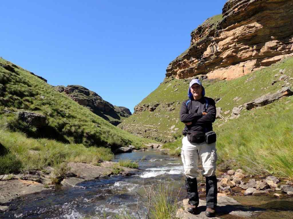 Once we had arrived at our allocated camp site, we parked the vehicle, packed our day packs and headed off on the exploration walk. The Drakensberg at this time of year is very beautiful, calm and clear, the grass just starting to turn to it s winter colours, and plenty of water about.