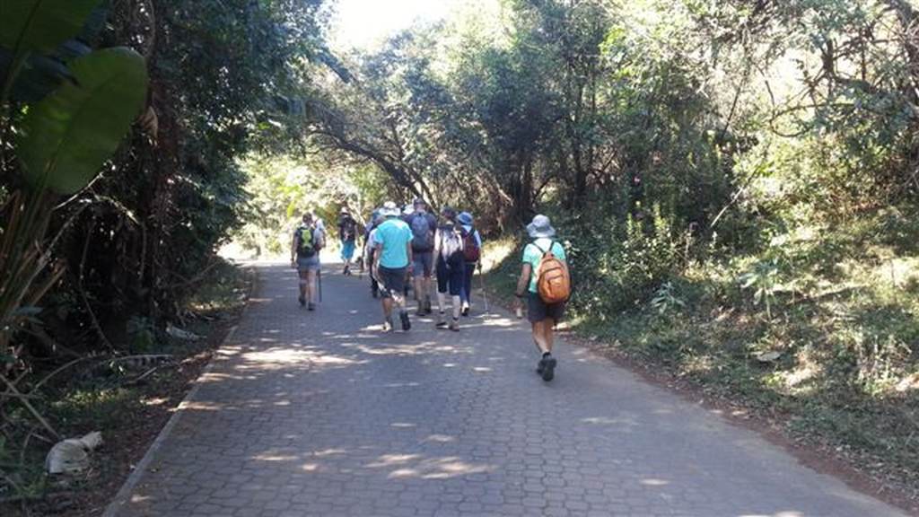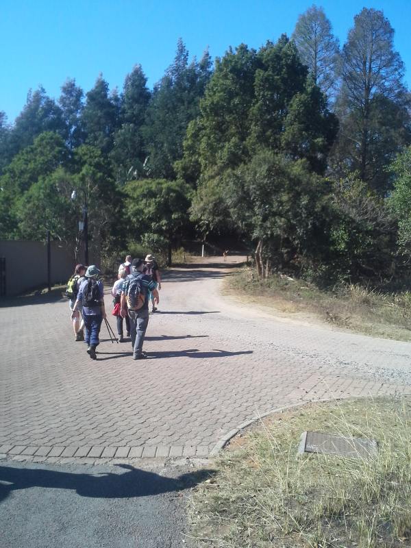 Thirteen keen hikers met at Cascades shopping centre car park, near the Memorial for Burry Stander (Renowned cyclist) with Katy and Charlie's even keener dog Maestro.