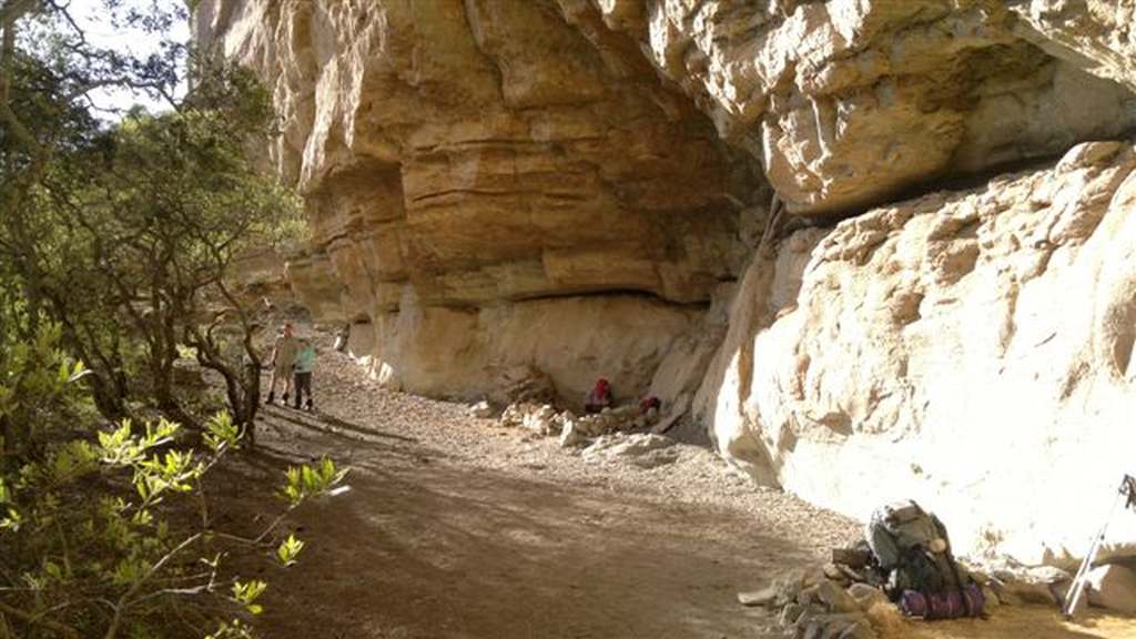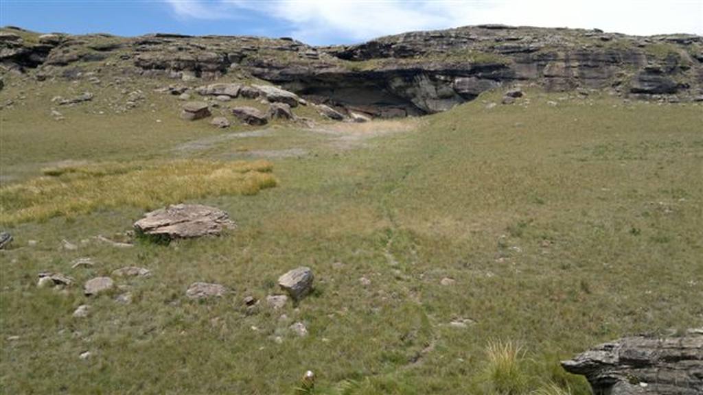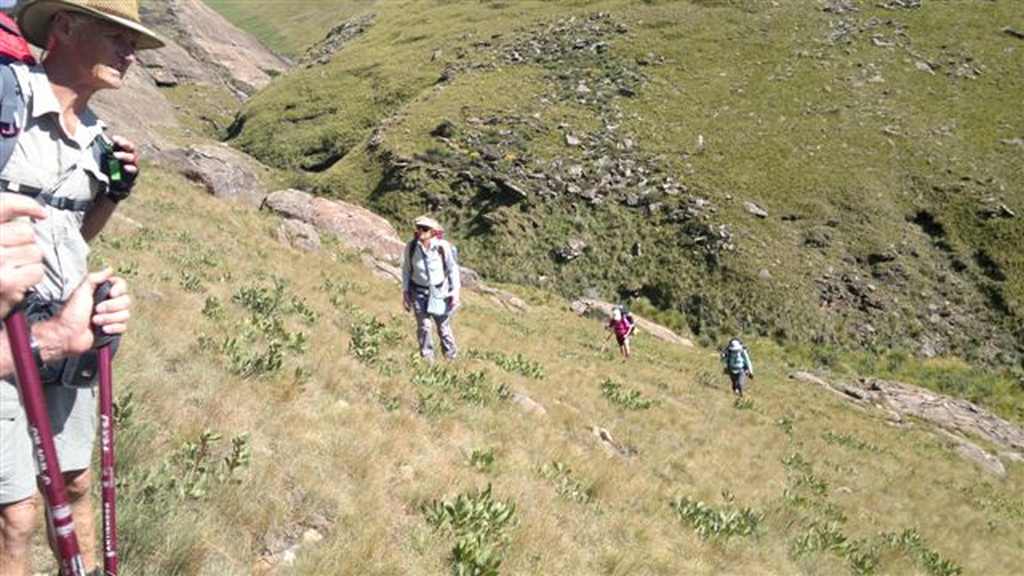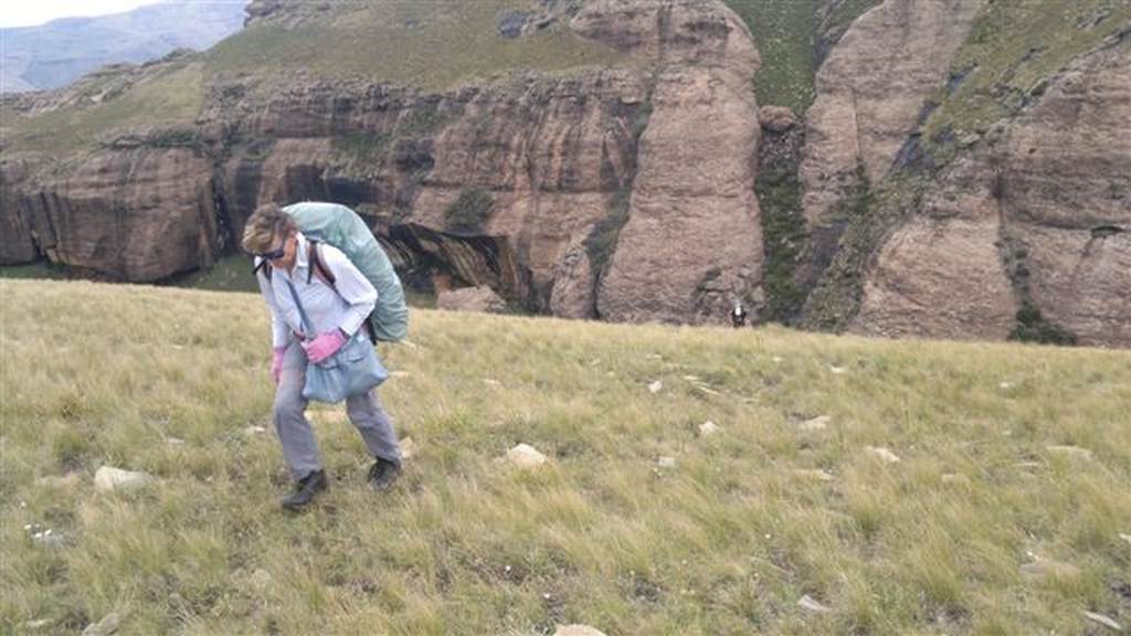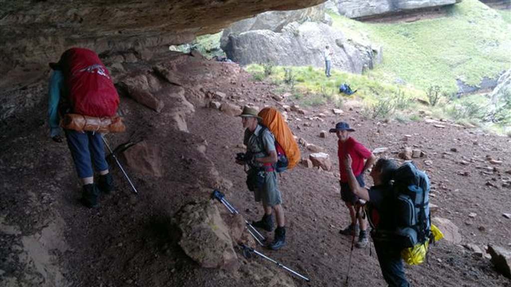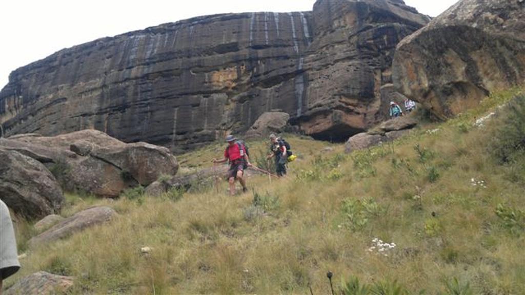 After breakfast and packing-up we were on our way just after 07h00 to our 5th cave via a different route with more contouring first, before dropping steeply over several rock-bands and down a rocky valley to Langalibalele Cave.