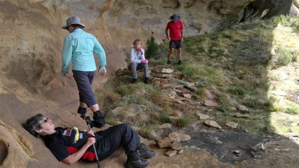 After arrival at Langalibalele Cave we had some snacks (some inc me having lunch) and others in our group took time to view the Bushman's paintings (faint and not as good as the other caves). Also those not previously familiar with this cave were able to explore through the "passage" into the dark back part of the cave and exit at a higher level.
