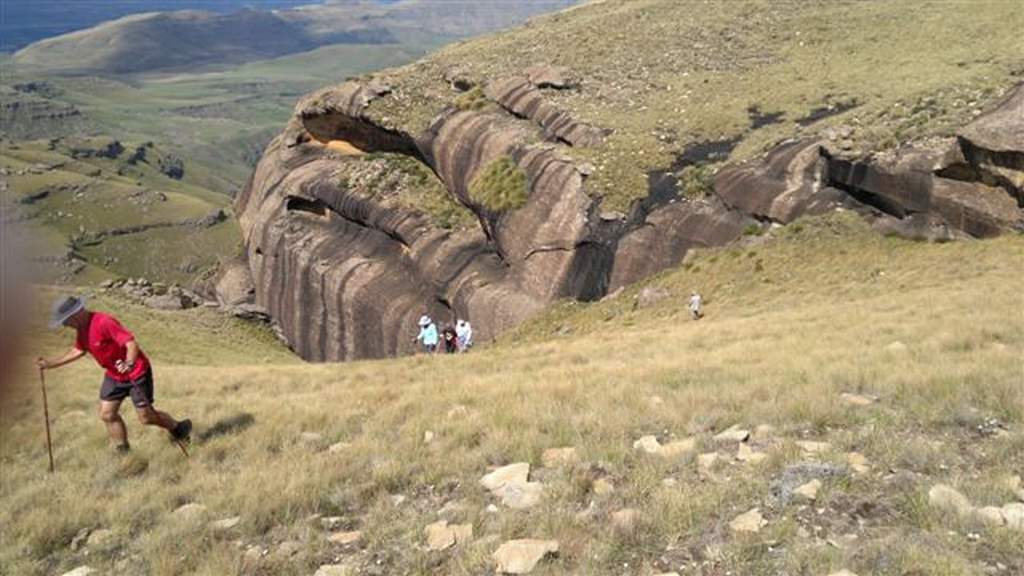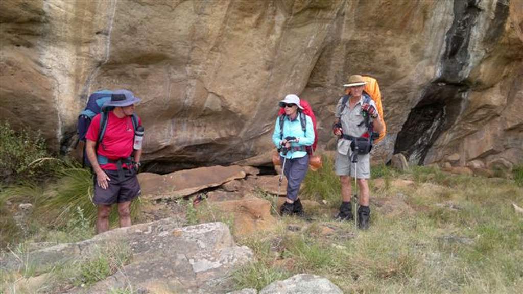 Great views of the Devil's Knuckles and Thaba Ngwangwe were appreciated as we climbed onwards past "Twin-Rocks" to reach Painters Cave, our well earned lunch stop.(Very good Bushmans paintings here, the best being up a little slope behind a big rock if you know where to find them).