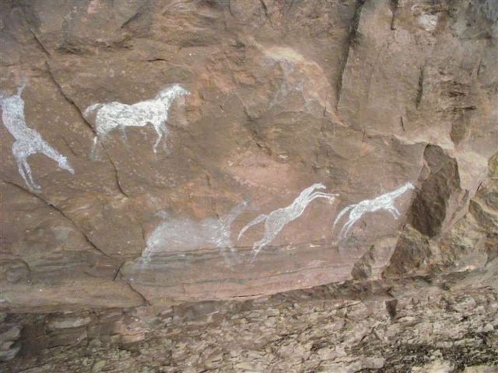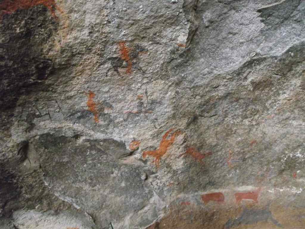After our 2nd cave of the day we climbed up to our backpacks and after another short climb we were on our way down another valley towards our 3rd cave "White Horse Cave" which we soon reached after a bit of bundu bashing to reach one end of the cave. Besides other Bushman's Paintings there are, as the cave name suggests, beautiful paintings of white horses in various poses.