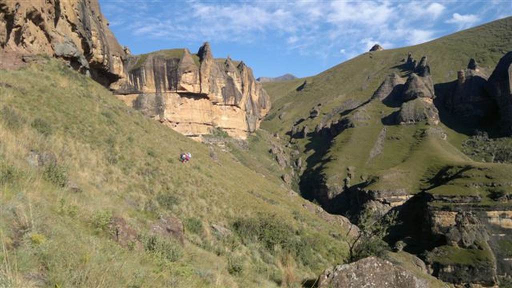 32. Descending a valley off the beaten track towards Langalibalele Cave