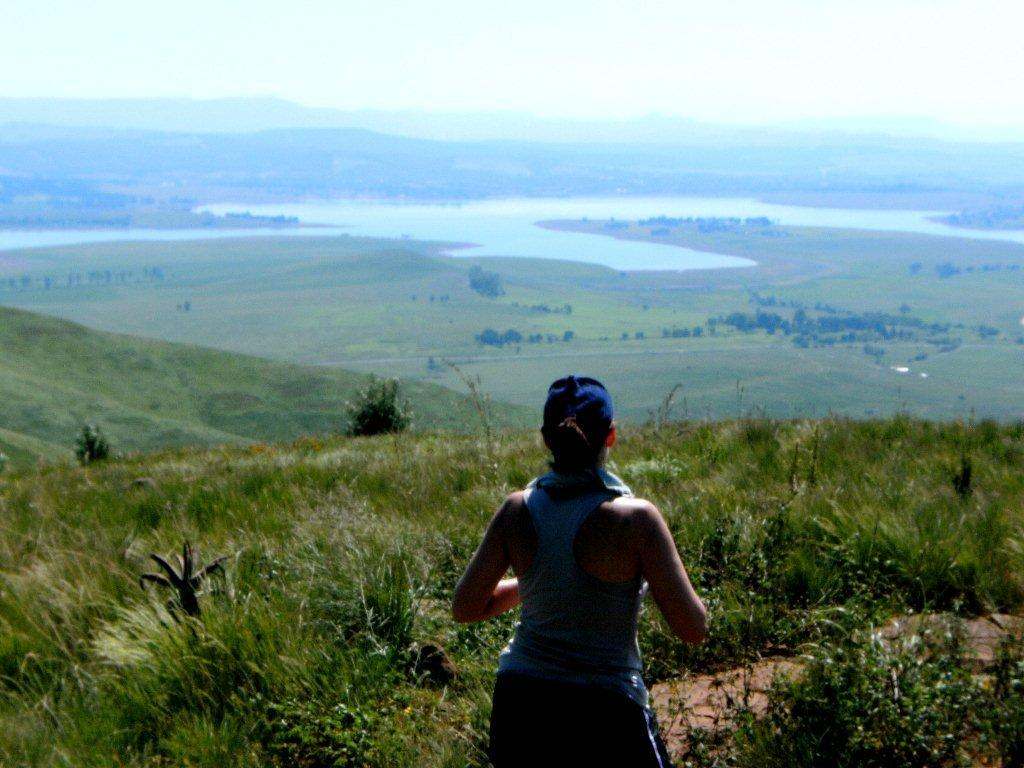The party started to stretch out, the fitter keeping their pace, the back markers changed down to 4x4 gear and speed. Meanwhile the leaders had time to take a break half way up the hill, and enjoy the views of the now drought affected Midmar dam in the valley below.