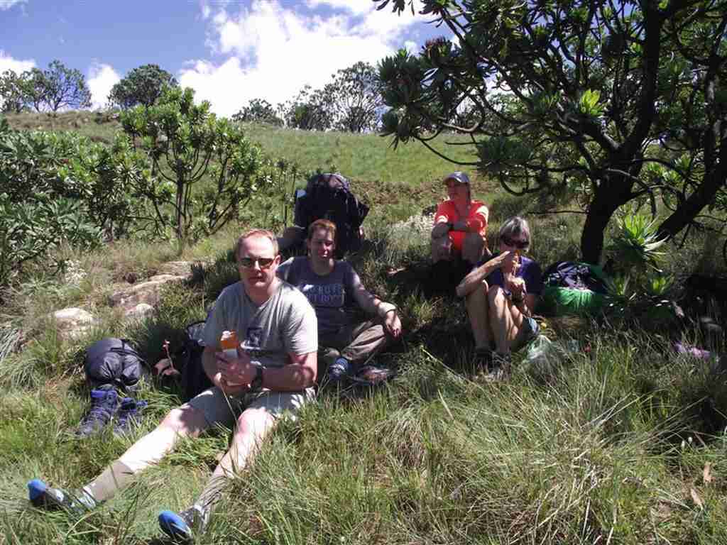 8. Lunchtime at the top of the pass for Paul, Joanna, Katy and Margaret - Rohan just out of photo