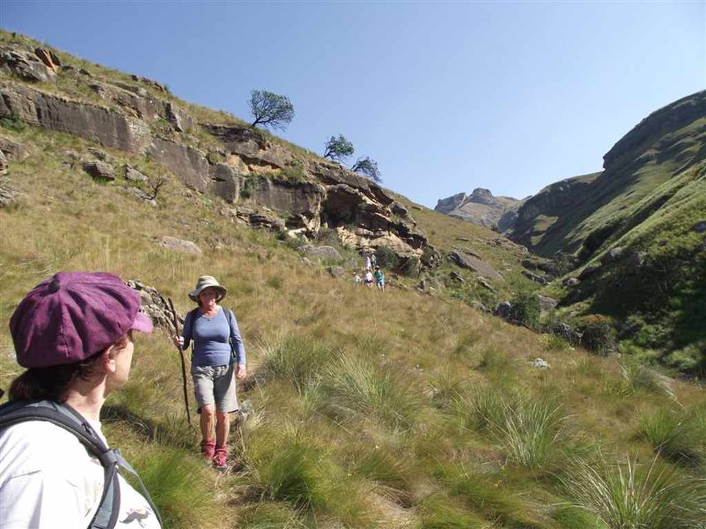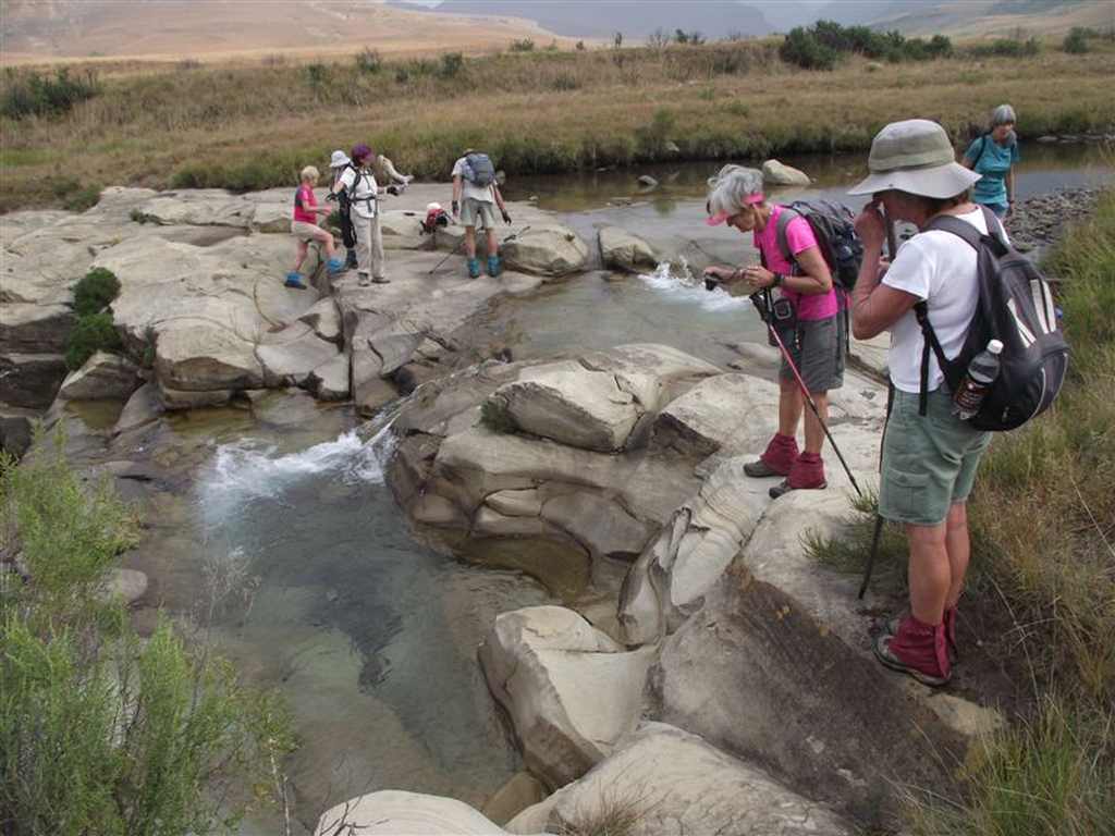 Thanks Rose for your infectious enthusiasm - Just a short note to say that the 4 early-birds on Tues morning joined us for another off-the beaten track hike, firstly up a very steep hill after crossing the Thukelana River about 2 km away from the cottage, then down again before more climbing steeply onto a ridge, parallel to, but high above the road in the direction to Underberg, with brilliant views towards Garden Castle Mountain and the valley below. After the ridge walk it was steeply down into the valley and our return walk was along the Mlambonja River where Steve, Lynda and Margret had an extemely cold swim in an inviting pool, before we met Rose and Margie having a late afternoon stroll.