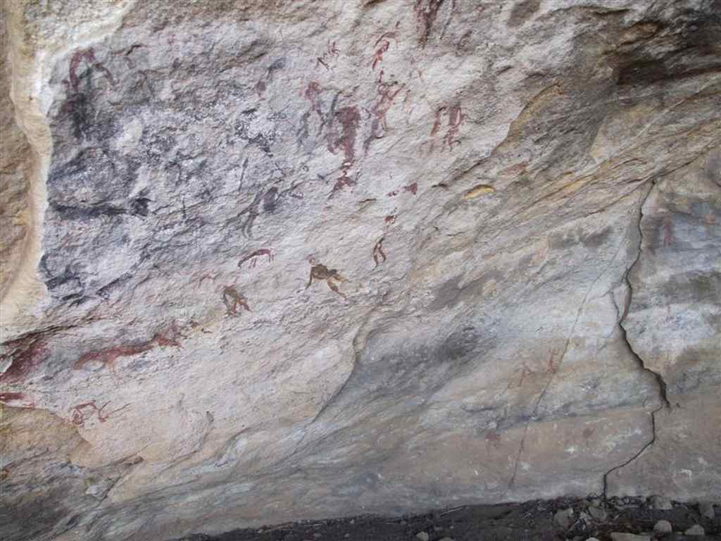 But as always, once we viewed Rhino in the early sun, and the sparkle on the ripples of our first water crossing, we forgot our discomfort and revelled in the companionship and the sheer joy of hiking far away from paths and houses. An easy hike to Keimarg cave which is nestled cozily under a protective overhang, and furnished with dried grass and artistically arranged stone walls (hand-laid by KandM of course!)