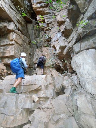 Without injuries we reached the point where we had to leave the riverbed and make our way up the steep slope back to the upper part of the gorge. Huffing and puffing uphill warmed us up again.