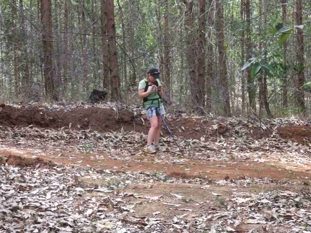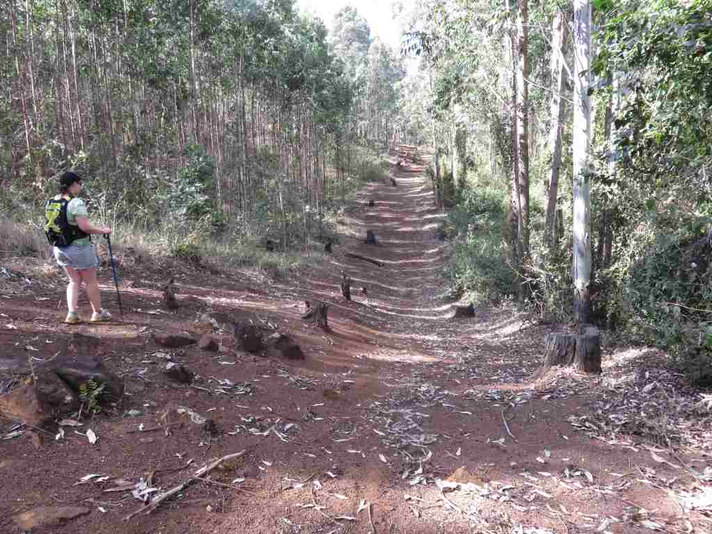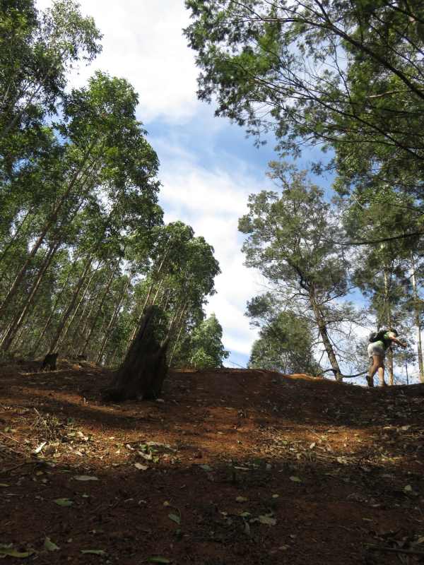 Pic 5: After a dusty climb a pleasant shaded walk through the Wattle plantation