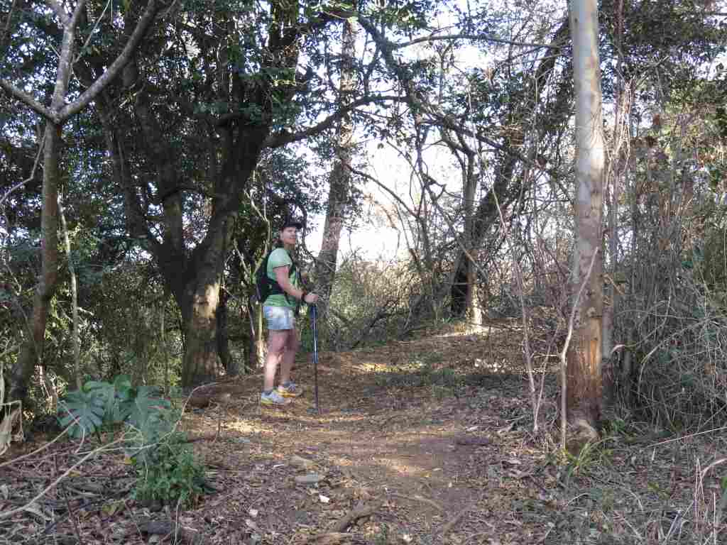 Pic 24: Quite a dip and a climb at the start of our return route, Katy taking the incline cautiously