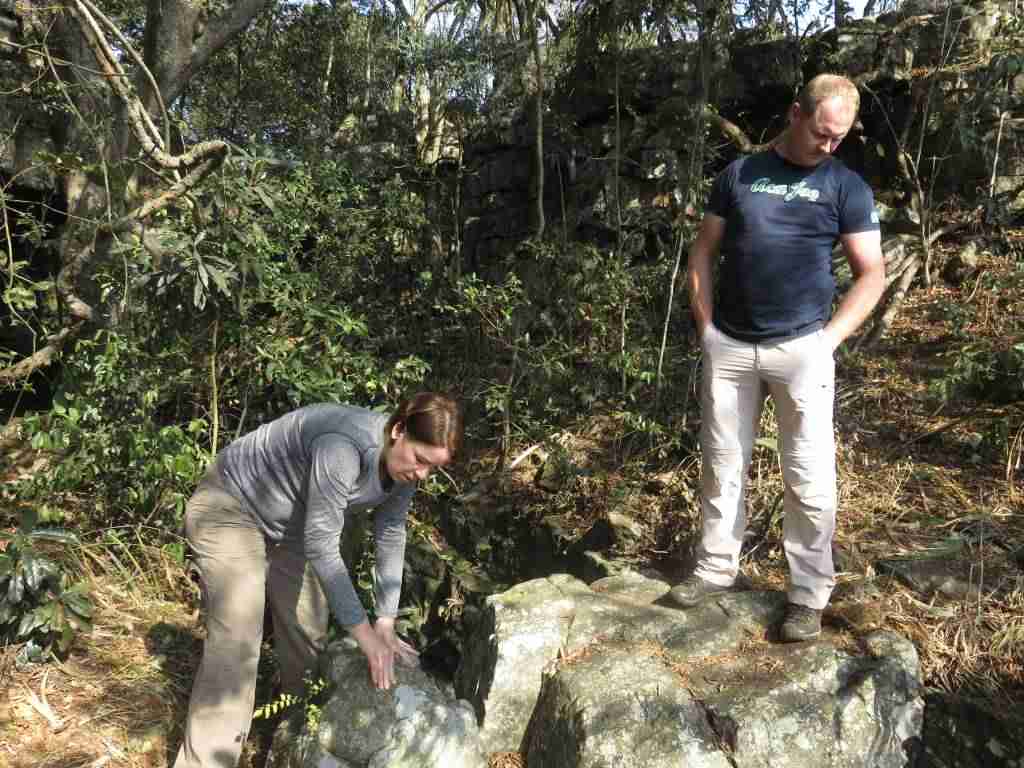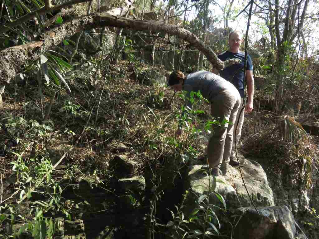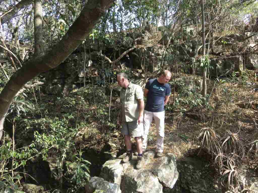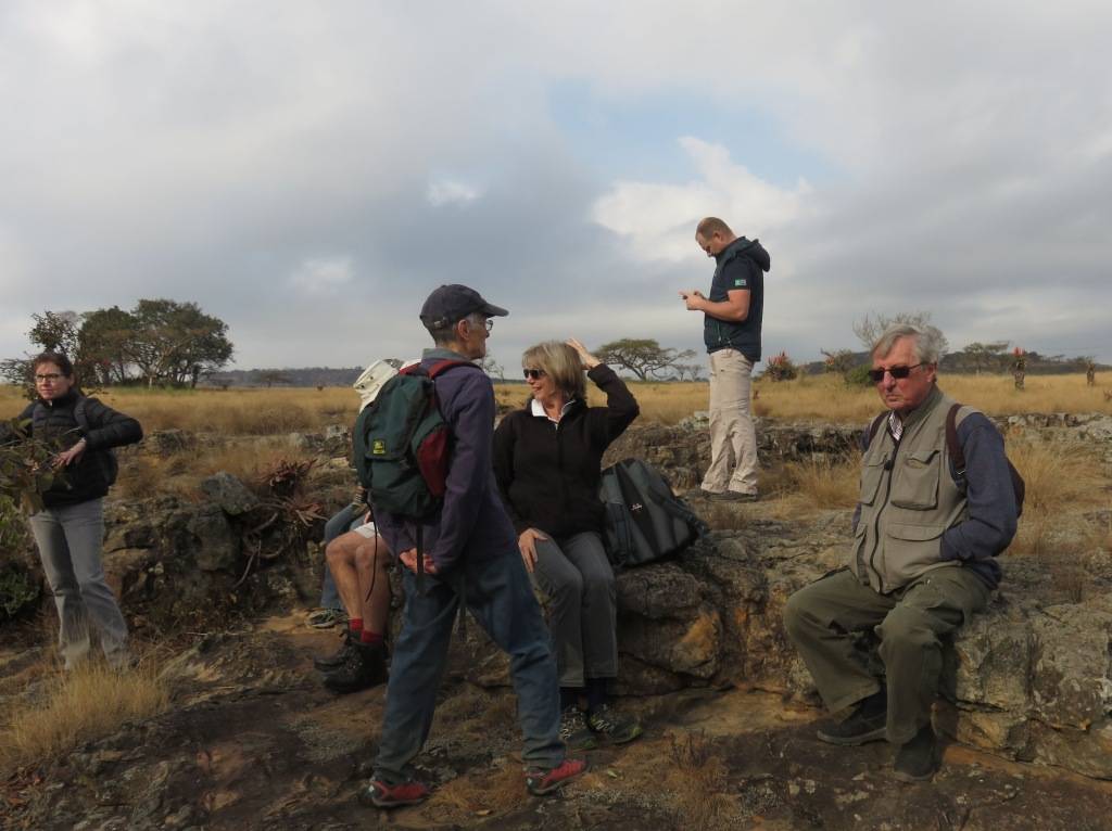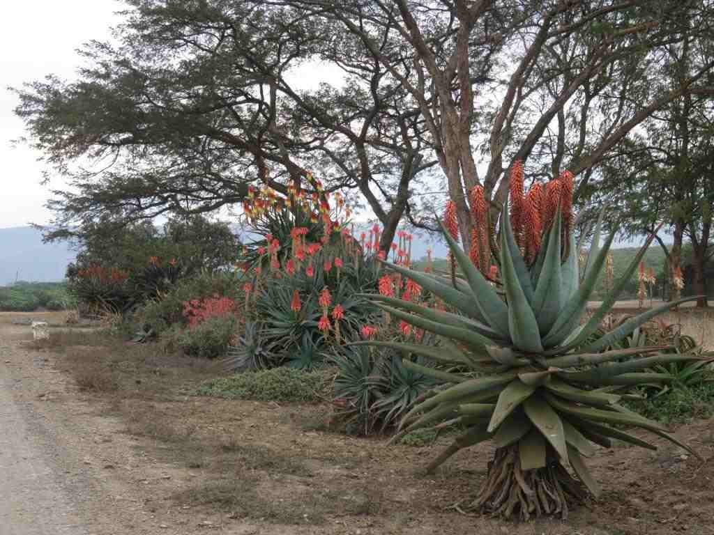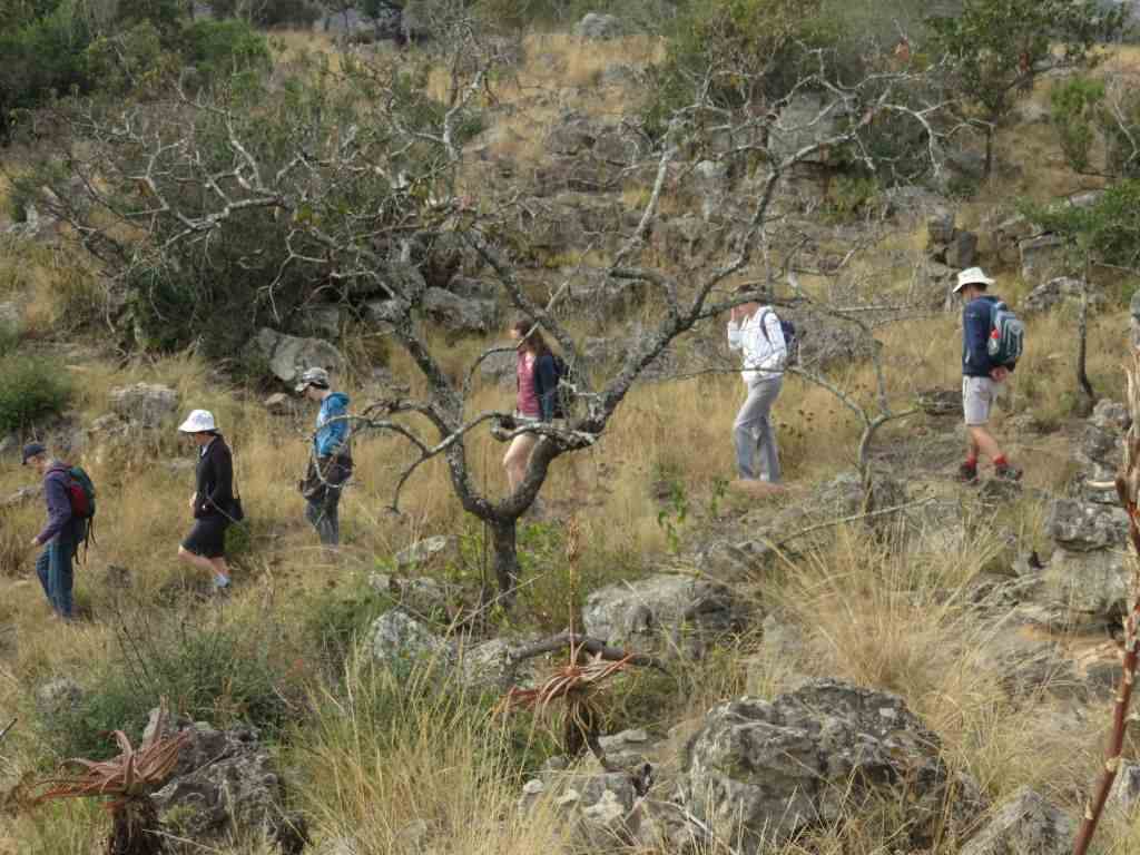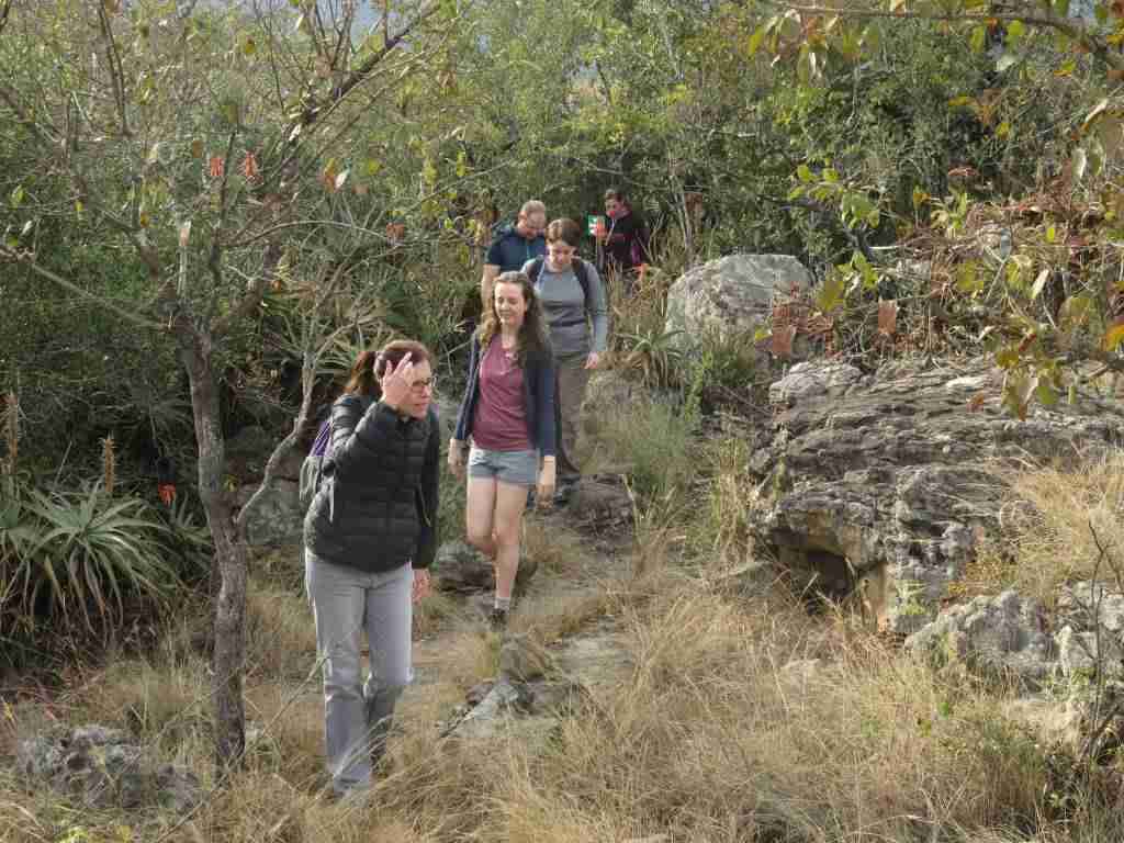 First stop just after the start is to view from the top, the falls (unfortunately without water at this time of year). All along the way there is a colourful assortment of aloes. A short diversion branching off to a ledge for a better vantage point of the falls gives me, the photographer the opportunity to photograph most of the group in turn as they reemerge (photos 11-14). A short rest (photo 15) after the exertion of the climb back up and then we are off again to the next viewpoint.