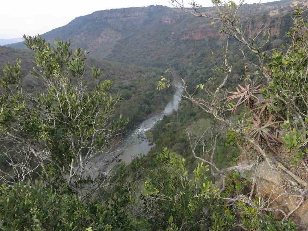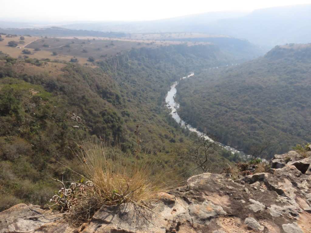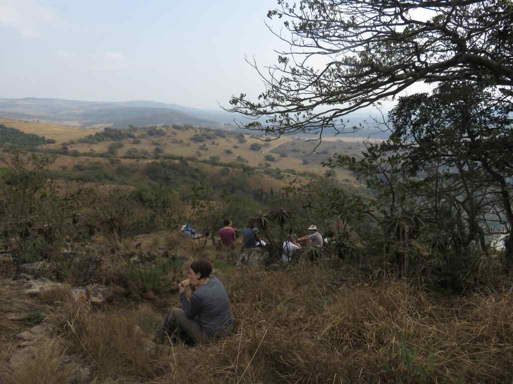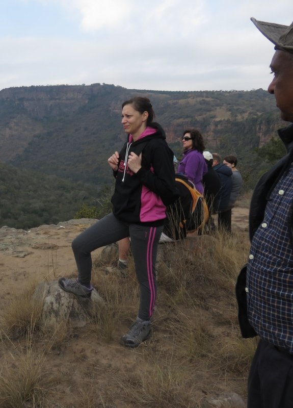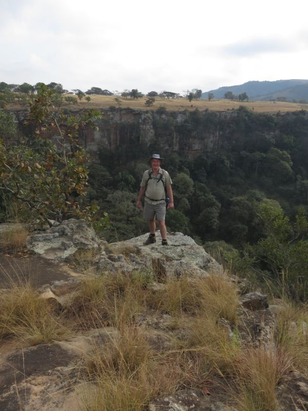 Off again hiking past our next planned rest point, the Kranz Hut, as it was occupied, and onto the top of the Kranz for our morning/early lunch break and an even more elevated view of the Umgeni Valley.
