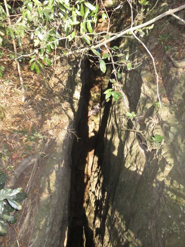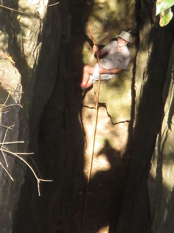 A little way down from our stopping point a path leads off to a fissure in the Kranz with a slim rock ledge leading over it, which some of the braver hikers investigated and clambered onto. To Katy's dismay one hiker (a more season climber we hope) clambered down the fissure on a rope that was fixed in place there. To Katy's relief he reappeared safely as the group reassembled!