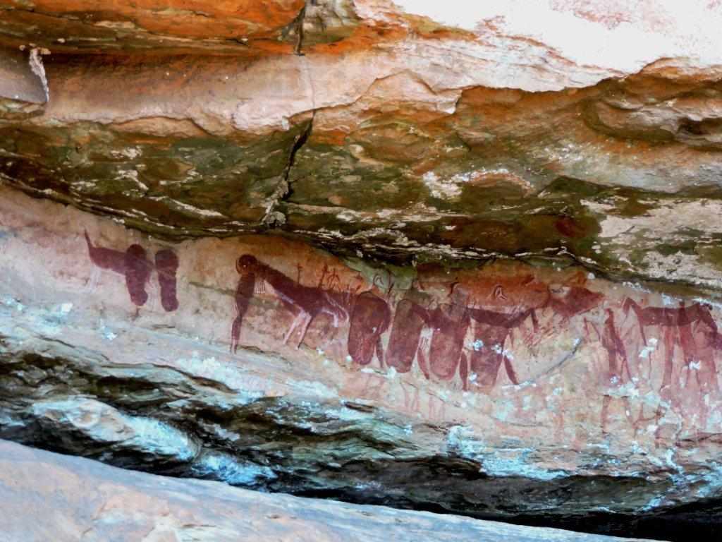 In hidden shelters faded and not so faded rock art galleries were found. Fortunately they were far enough away from any vegetation so as not to be damaged by any flames