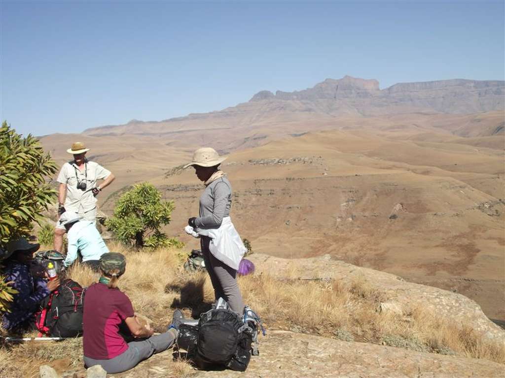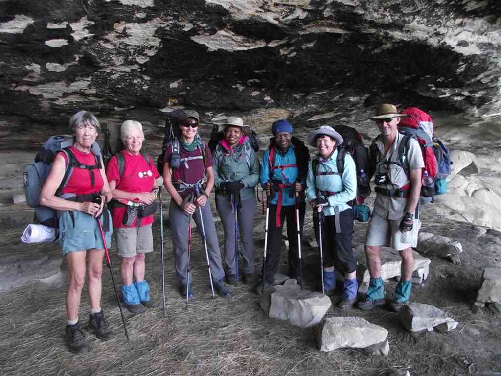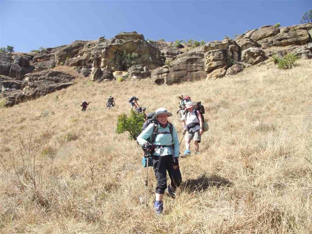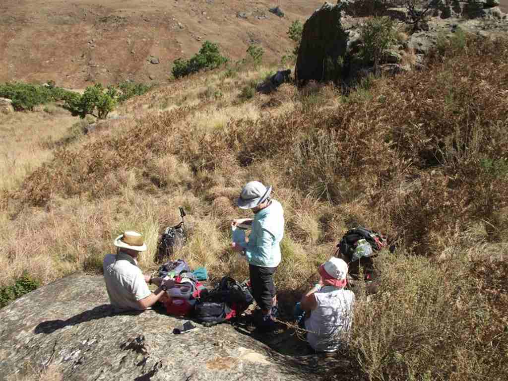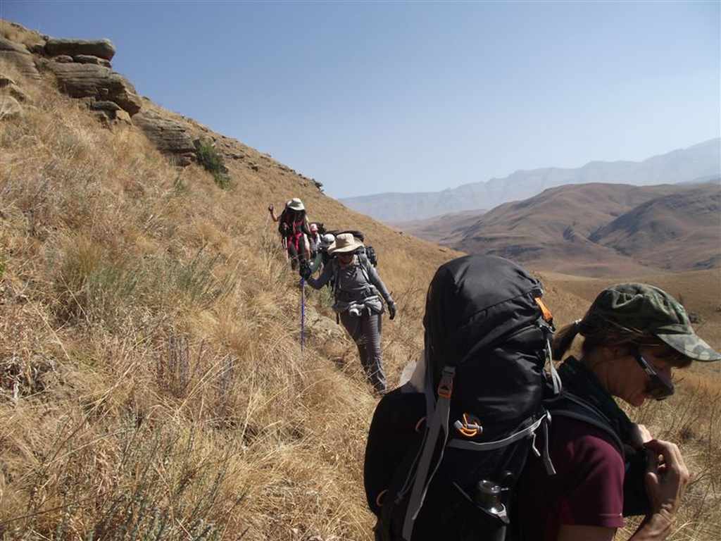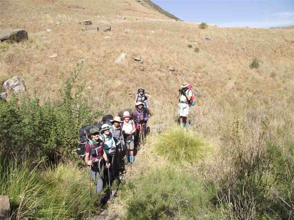 Then we were off again towards the cave along an undulating route before climbing steeply towards the cave, but to our dismay we could see another large group of hikers in the distance travelling down to the cave from the normal route. I hoped this group were just day hikers not intending to sleep in Caracal Cave as I had booked the cave months before with the Officer in Charge.