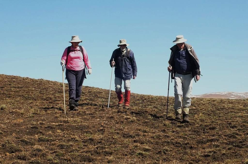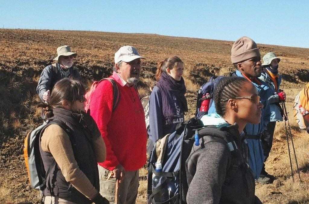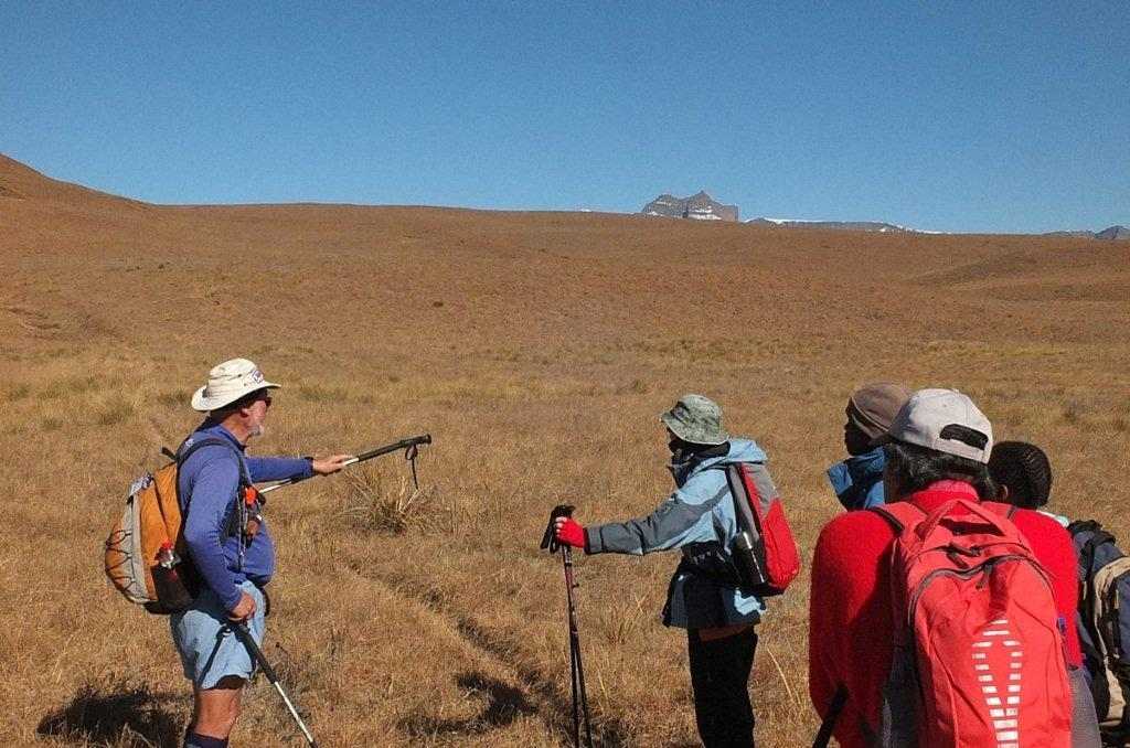 Tea was enjoyed looking up at the Giant, then another walk, towards the east and then south and around a high hill saw us having lunch looking down into a huge deep steep valley that was the river boundary with Mkhomazi. The high peaks of the Lotheni area were covered in a deep layer of snow. From our lunch spot were looking deep into the Southern berg, and we all know that the Southern berg gets more snow than any other part of the berg.