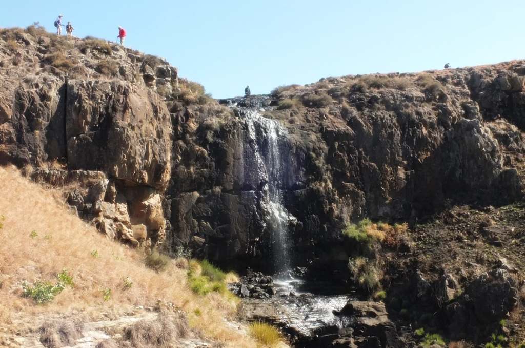 From lunch we headed into the flat undulating belly of Highmoor, where many small hills caused lots of small streams to trickle here and there amongst undulating small hillocks. In summer, not a place to venture as the whole area becomes one big bog of oozing grass thickened mud. But today it was fine. The area had been burnt, and we walked free and easy to a pretty waterfall that very few know about. In summer this becomes a great sight as large volumes of water cascade over the rock lip into another step valley.