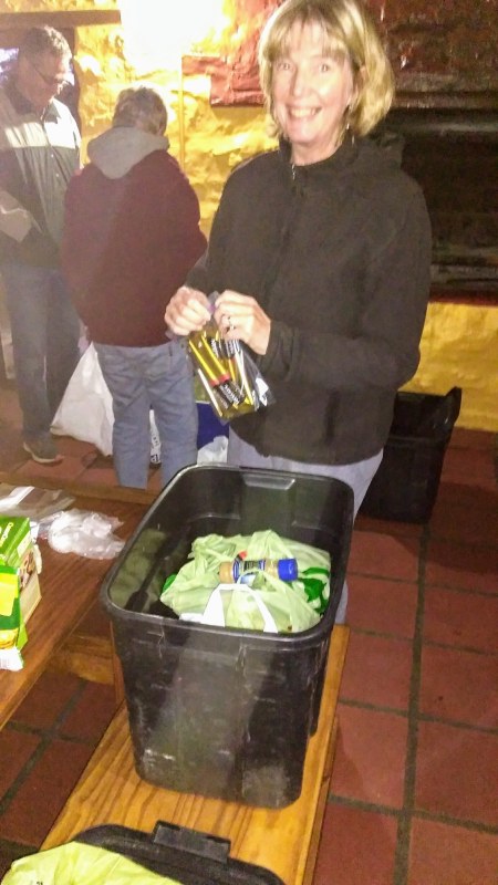 60 litre containers are supplied to each hiker. A member of our group made a 60 litre cardboard replica to see what he could fit in.