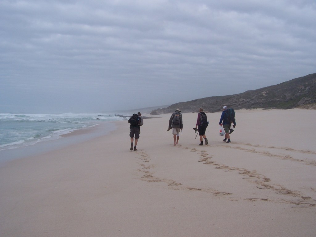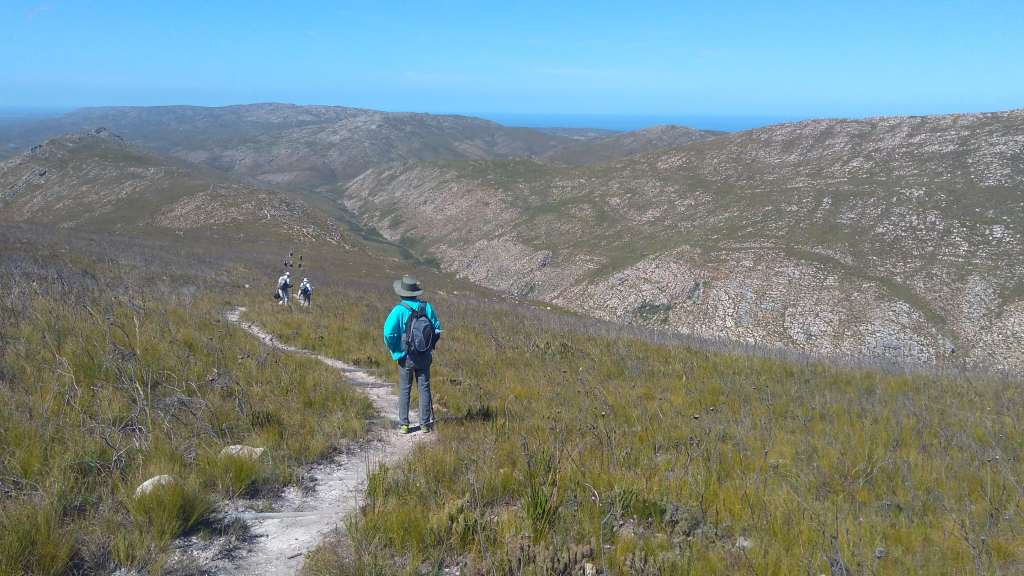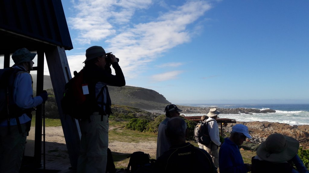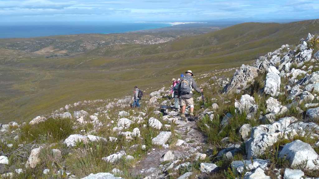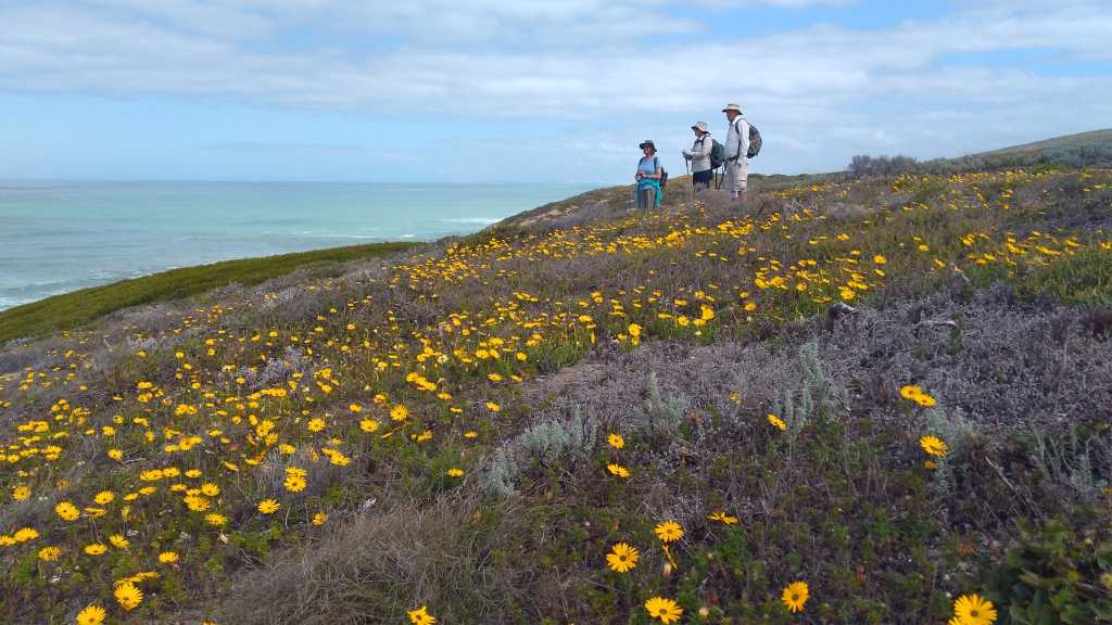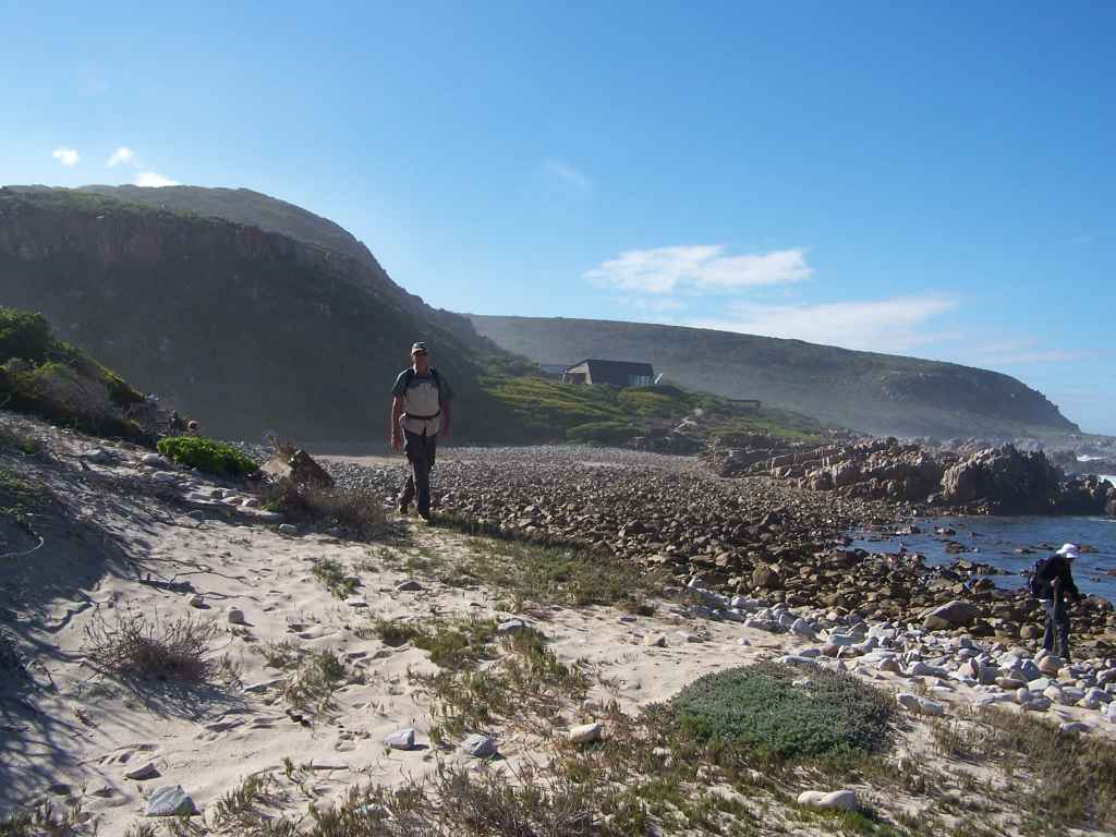 A fairly long day of 8 hours lies ahead of you. Elevation of 400m. The sea gets closer and the prospect of whale spotting spurs one on. Noetsie is in a beautiful setting of a bay. Very well designed accommodation and a perfect braai boma. Frozen food is thawed by now.