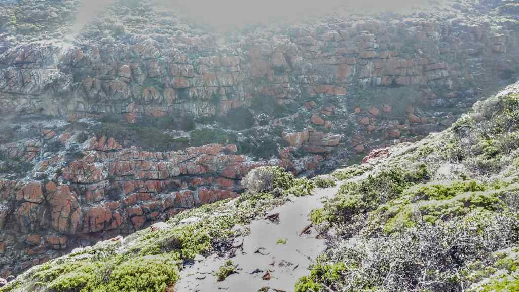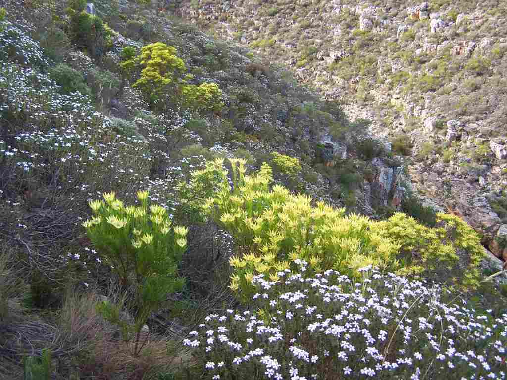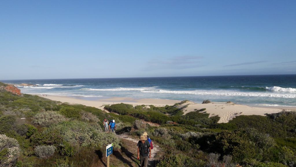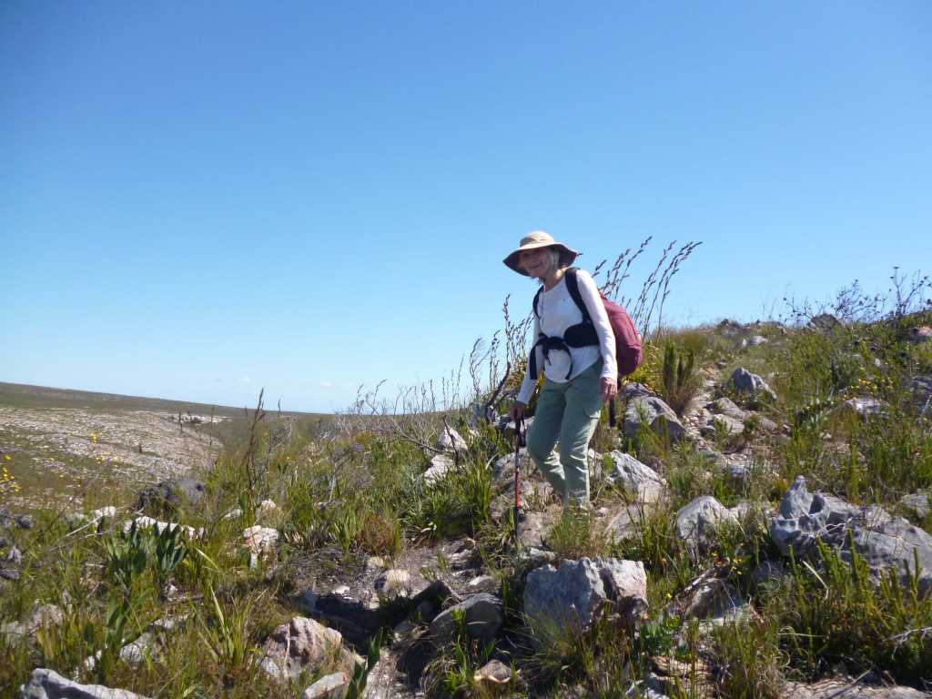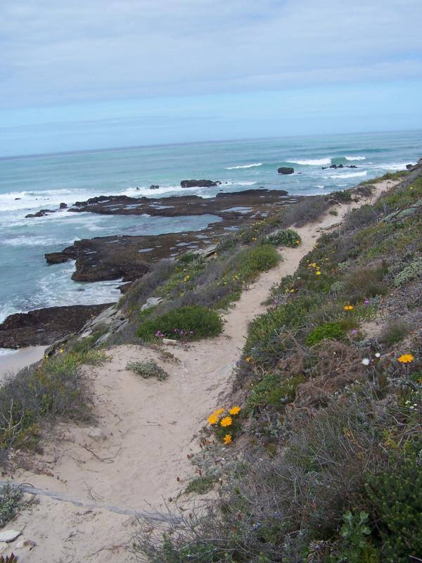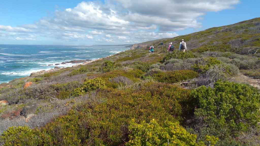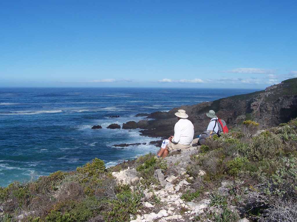 A fairly long day of 8 hours lies ahead of you. Elevation of 400m. The sea gets closer and the prospect of whale spotting spurs one on. Noetsie is in a beautiful setting of a bay. Very well designed accommodation and a perfect braai boma. Frozen food is thawed by now.