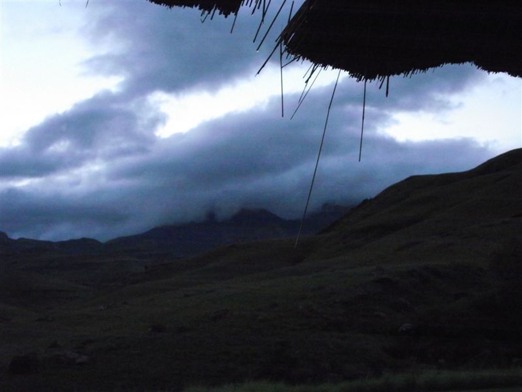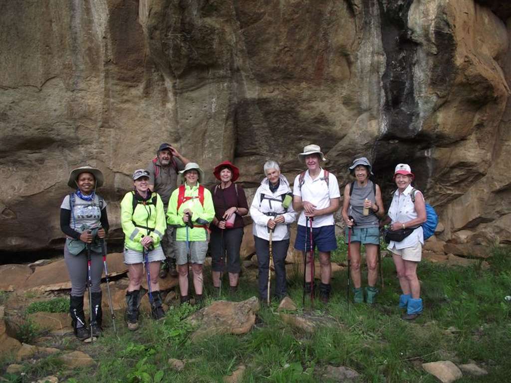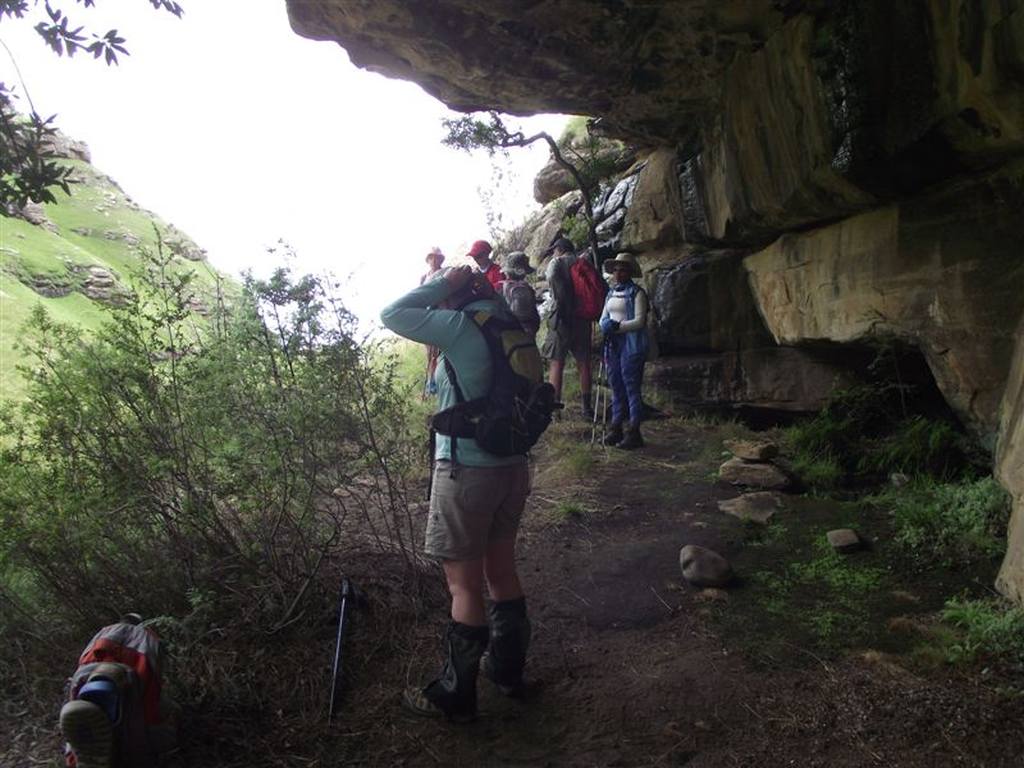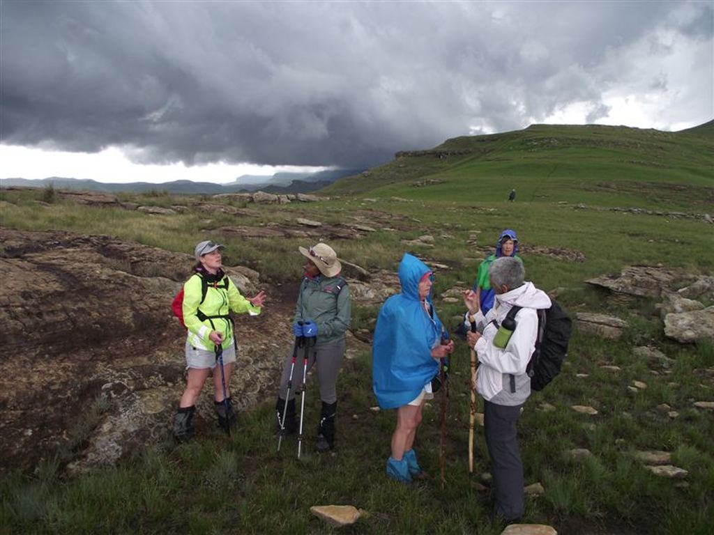 After lunch and a good look at the many Bushmans paintings hidden away in a sheltered area, we returned to the hut via the same route, but soon encountered a thunderstorm and heavy rain all the way back, so we were wet through on arrival at the hut but spirits not dampened.