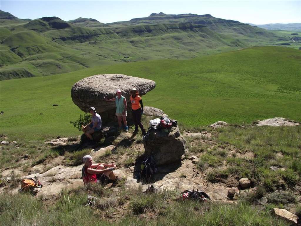 7. A short break, with the Devil's Knuckles on the horizon with Thaba Ngwangwe to the right