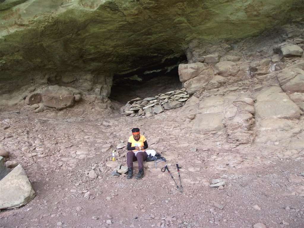 We were ready for a nice rest and lunch at the cave where we could choose to sit on the lovely grass in the sun just below the cave or on the rocks in the shade of the cave, with its several rough-walled sleeping areas.