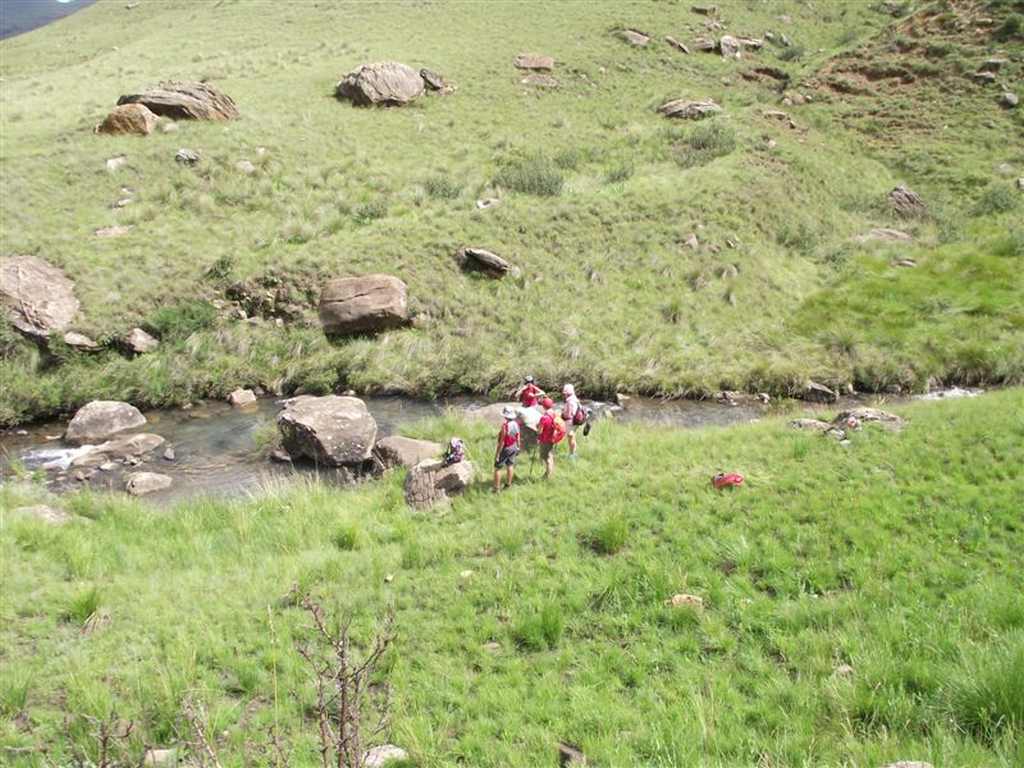 Our Thamathu group did start at 07h15 on a really beautiful day, firstly straight down from the hut to cross the Bushmans River where it was boots off as the river was flowing swiftly (if fact all the rivers in the area and even the small streams were flowing well which was good to see).
