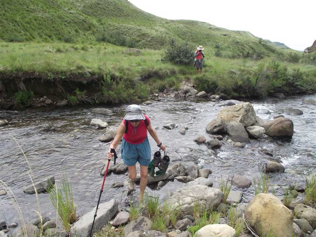 Then it was "off the beaten track" for a while before we crossed the fast flowing Ngwangwane River again to re-join the main return route from Cedrics Pool to the hut with two more rivers to cross before reaching the hut - again three of our ladies opting to skinny dip in the Bushmans River before returning to the hut.