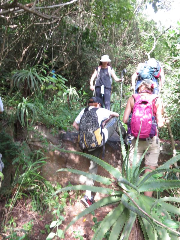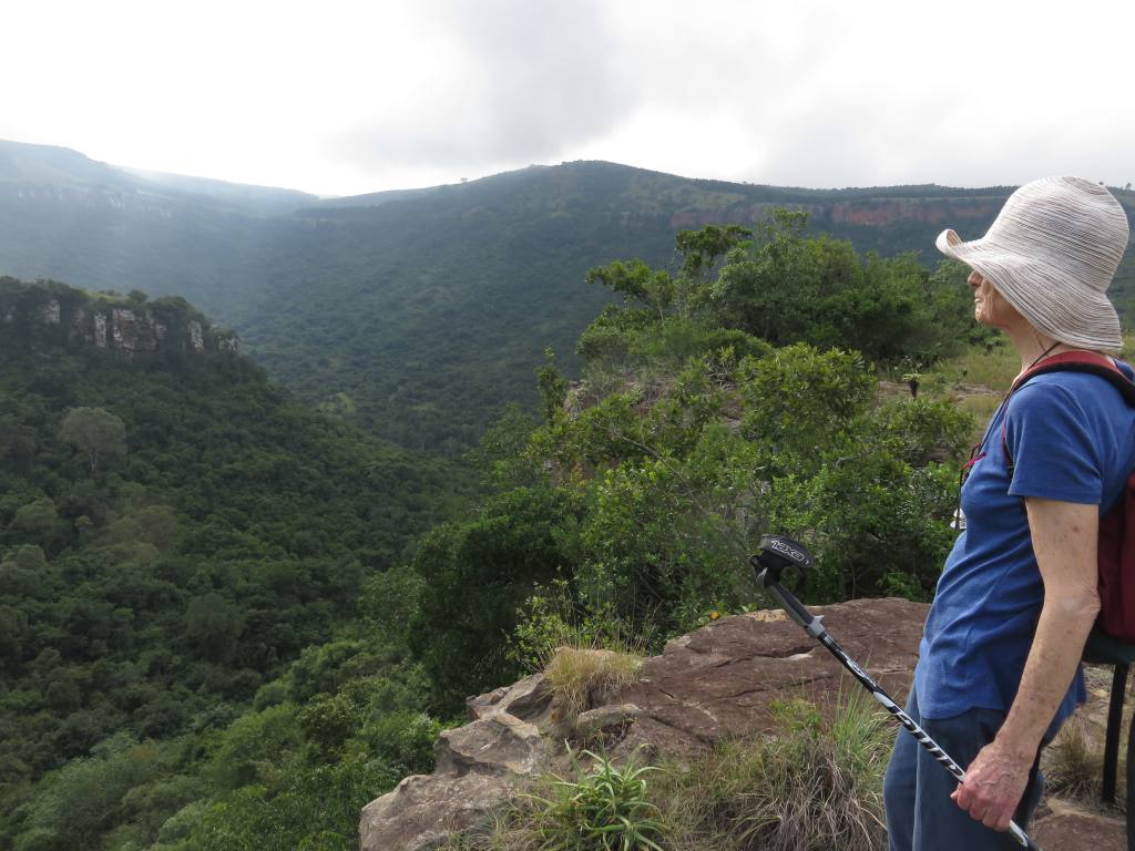 After the customary group photo and team talk we ventured off on the "Kranz" trail, starting at the waterfall (without water) and then following the edge of the escarpment with a short detour to see the "Falls" alas also without water yet still giving a great view of the valley and pool below, the clamber up from that detour adds a little strain to the interpretation of this being a "Grade 1" hike, but is well worth it for the view, and all 9 of us made it.