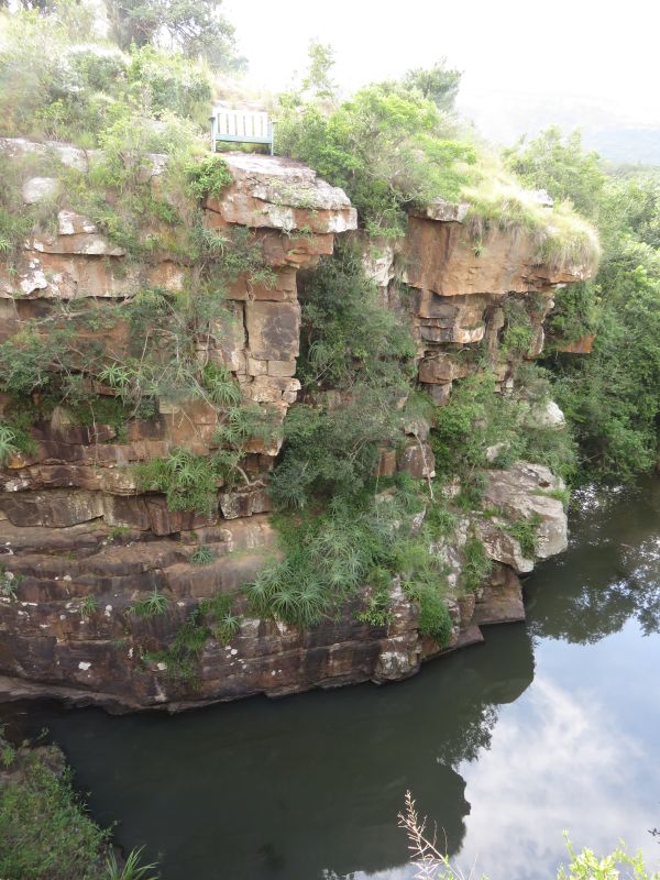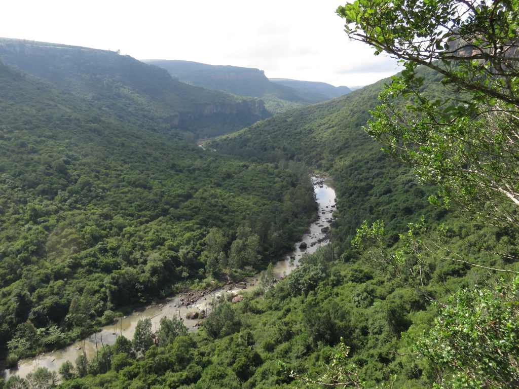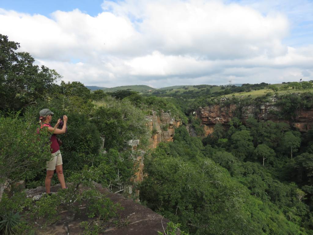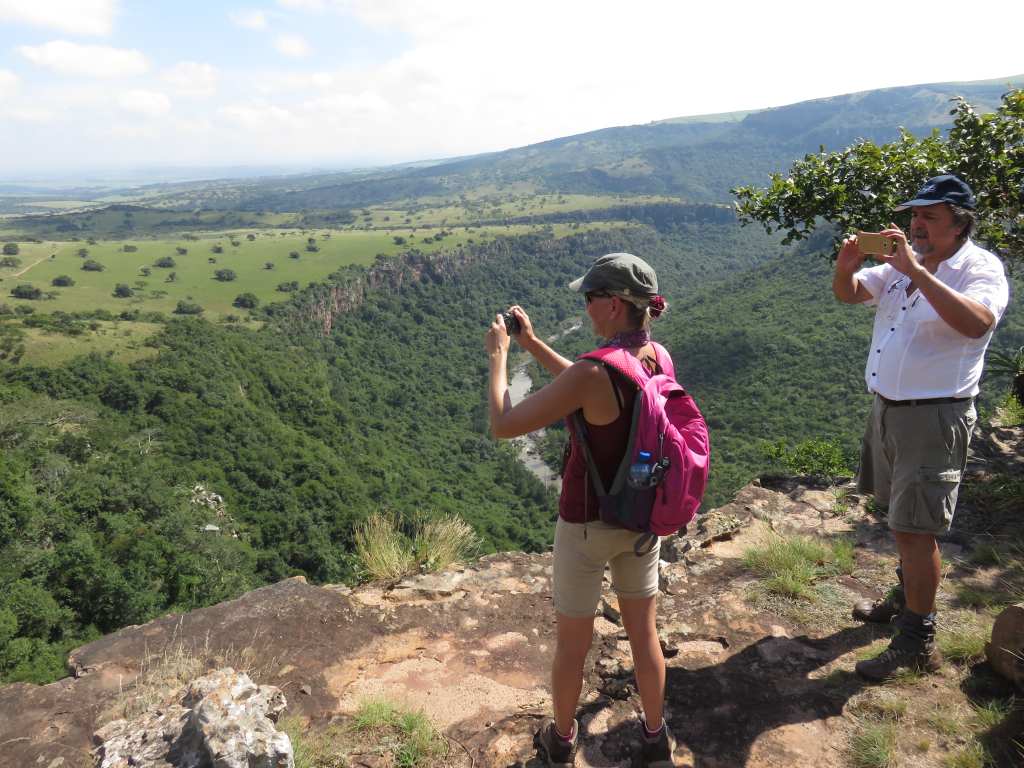 The walk along the top is very pleasant with a variety of plant and insect life typical of thornbelt vegetation - particularly noticable were the butterflies, mostly white but several other more colourful ones were spotted. "Viewpoint" stops along the way give a breathtaking view of the river valley below, and provide photo opportunities as well as a drinks break. In the distance alongside the river we did spot what appeared to be a Fish Eagle with his/her eye on the rather low river, it was noted that the rocky bottom of the river was now clearly visable whereas on previous hikes this had been well below the water level.