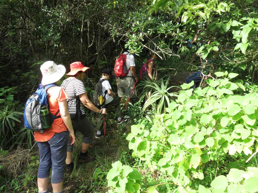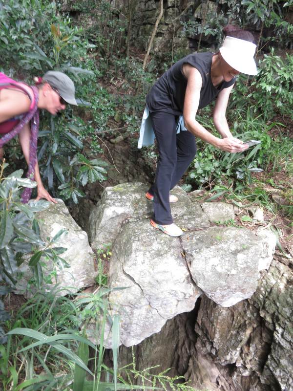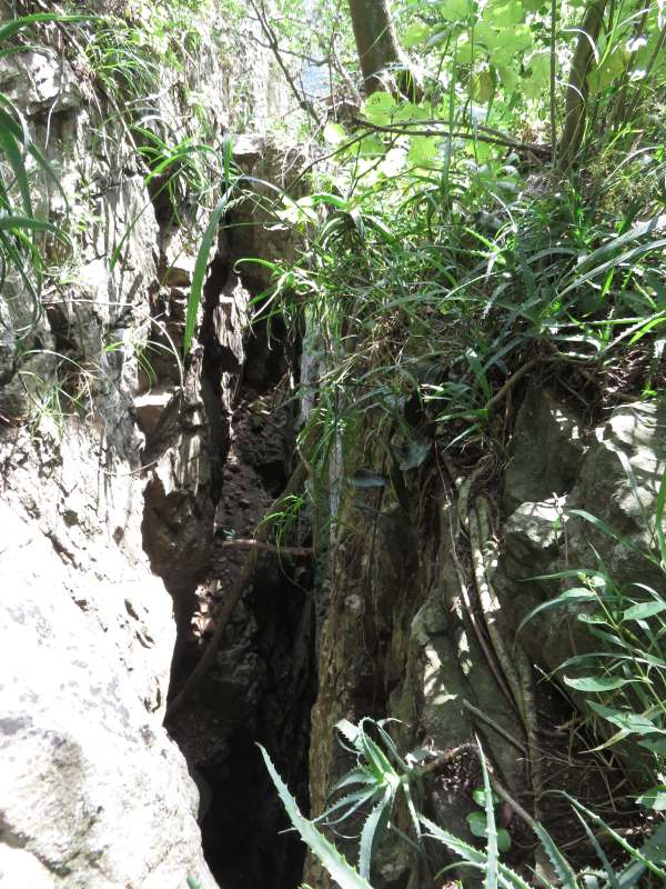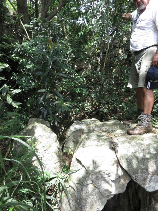 We then branched inland slightly going up to the "Kranz Hut" which was occupied as we encountered an adult leading a small troop of children to the hut, so we did not have the opportunity to explore the venue this time but passed onwards and upwards towards the Kranz. A couple of reststops along the way under the shade of some trees was very welcome as the sun had now burnt its way through the clouds and the climb, though not so bad, was hot going. On reaching our destination the "Kranz" we admired the view and then settled ourselves in various clumps of available shade to have our snacks and rest. Following this we explored the "Crack" which is just 20m or so to the left of the viewpoint and it is quite awesome to peer down the fairly sheer crack between the rocks - and for the brave, to stand on the rock bridging the two sides.