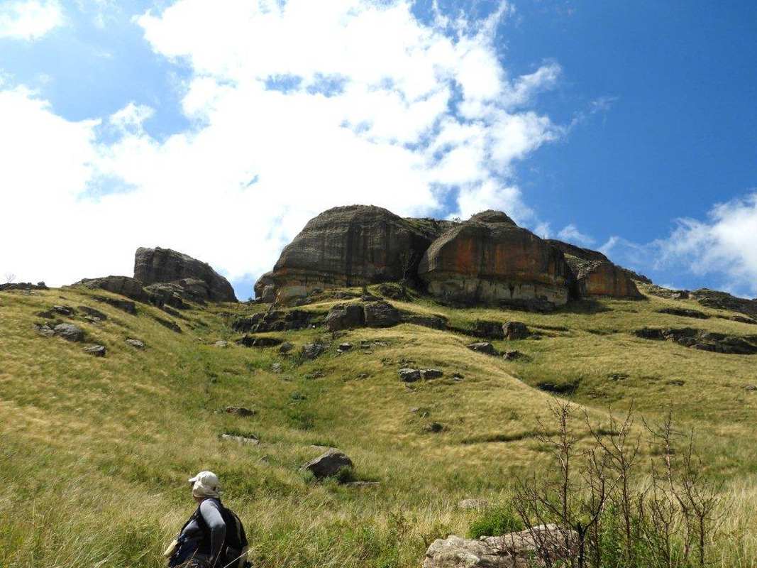 Giant' s Castle stood high, clear and massive on the western horizon. I had chosen to take the normal long route to the top of Mt Lebanon, and hope to find the exit from the top of the mountain to the entry road to the campsite, as we had found out on our last trip, that the climb up to the top of the cliffs was a fairly serious affair.