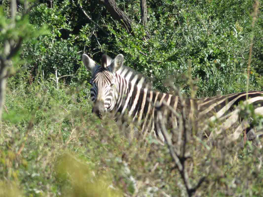 After pausing to take a 'Group Photo' we started down the 'John Pringle' path towards the dam and almost immediately spotted giraffe in the far distance on the opposite hill, then some of the more attentive hikers at the back spotted a small herd of wildebeest on top of what I believe would have been the raised 400m firing point of the shooting range, the wildebeest were well camouflaged among the thorn trees atop the small hill. Skirting around the dam we soon saw a giraffe looking inquisitively at us, and we stared just as inquisitively back, suspect he was making his way to the dam and our paths had crossed as for a moment we suspected he may be coming right at us. Moving on from that encounter we followed the path through the thornbush leading up to the Bisley Road where we took a short break, before retracing back to the dam. Along the way we spotted a small hear of zebra, not too close but within camera range.