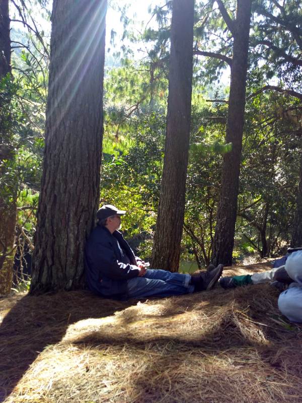 So, now, with an extra hour to spare, Chris suggested we do a detour to my house, approximately 30 minutes off piste from our designated route up a winding hill that would eventually overlook World s View. The wind had stopped and the sun was now shining, so we trundled along, with only minor injuries (a fall for Chris and a small slip in the mud for Cathy).