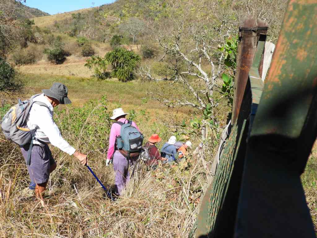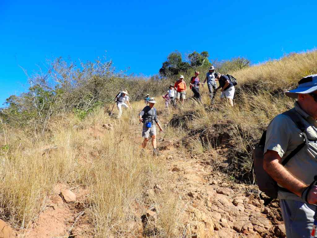 The hikers met at Gwahumba at the appointed time, and soon we were heading down past the animal boma, and down a long road to the bottom of the valley , heading for THE CAVE. The river that had been a bit deeper 2 weeks ago was down, so a dry foot crossing was managed. Just across the river si a cliff and in the base is a very large cave that has been laid out too invite day visitors to spend the day. Toilets nearby are a great help.