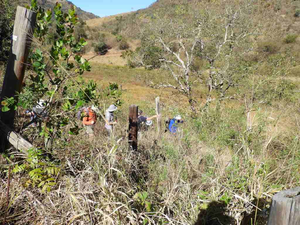 Further down the slope we met with the old road that used to be part of the 4x4 challenge route. However just around the corner, we came across a mean gate that was put to stop not so clever thinking drivers from attempting Sani Pass , which is still shown on the maps. The gate post , that we thought we would use to cross at, housed a whole cavalry of biting black ants, so a large part of the party had to take to the very thorny and steep bush to get around the gate.