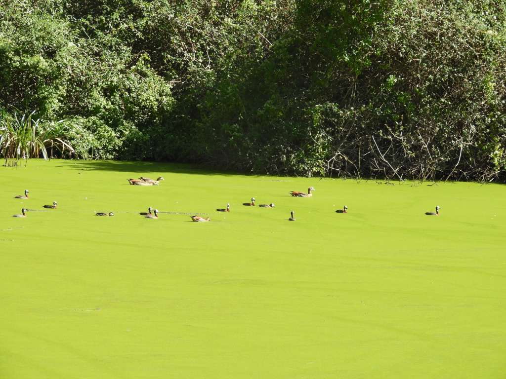 At the bottom of the cliff was a very green dam, that seemed to be some green vegetation that a great number of duck and geese seemed to thrive on. We were told at the office that there was a resident Pappa Hippo, a Mamma hippo and a baby hippo in the area, and to keep a wary eye out. No signs of hippo, so we moved on to our lunch spot about a kilometer away. On the way we had to barefoot across 2 streams, the water was intensely cold. A party in 4x4had gone up to the dam as we were coming to the first crossing, and before we got to the next crossing, we saw very fresh hippo spoor in the road heading to the next stream. Well a bit of speed and sharpened eyes got us to the picnic site safely, no sign of the happy family . Sad ?????