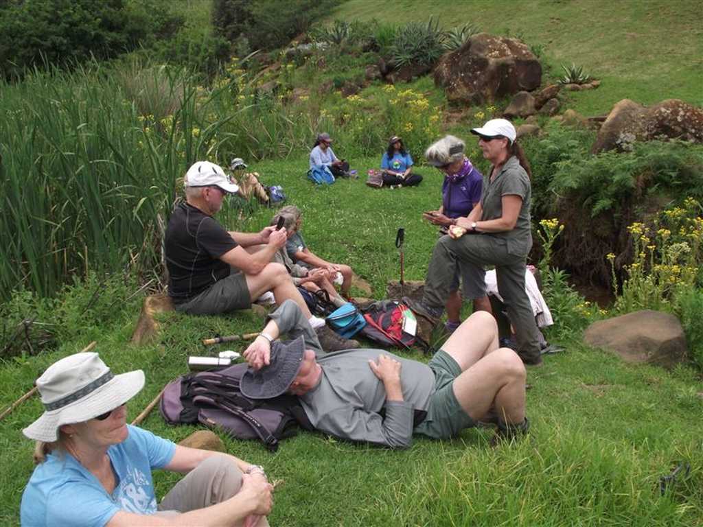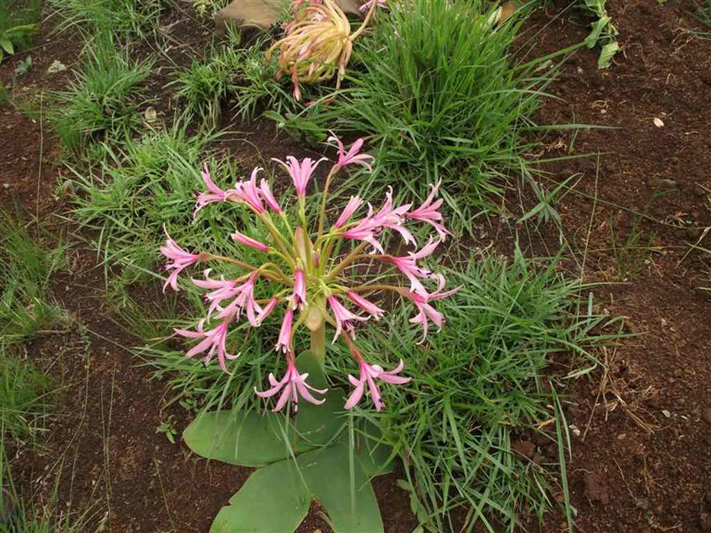 There are some people who think that driving 230 km to hike for 15 km is a very strange undertaking. However, if you are a Midlands (Durban South) member, you yawn your way up from Durban without a second thought. A long drive though misty rain proved, as always, how worthwhile it is to hike "The Ambers" with Keith. A truly superb hike - The Ambers showing off with verdant spring colours.... The newly budded Brunsvigias replacing the recent Boophones. ...The soft pinks of Dias Cotinifolio (pompom trees) adding their splendour to the shaved lawns...