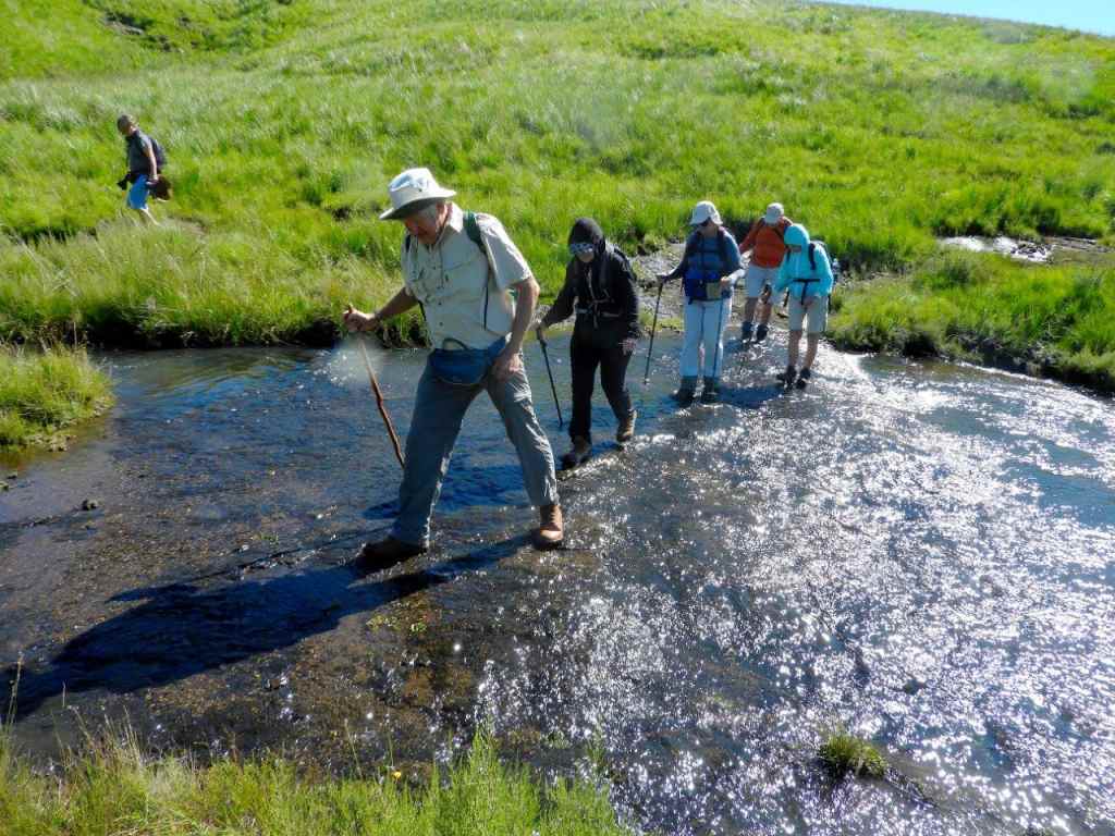 Highmoor is basically a huge wetland during the rainy season, so the chances of getting boots wet either at river crossings, or just traversing a low lying area are good .Nevertheless the are many great scenery changes as one hikes along , as on the Western side of the reserve there is always the high Drakensberg to ad value to the views, and from the high plateau, great views of magnificent valleys running down from the heights.