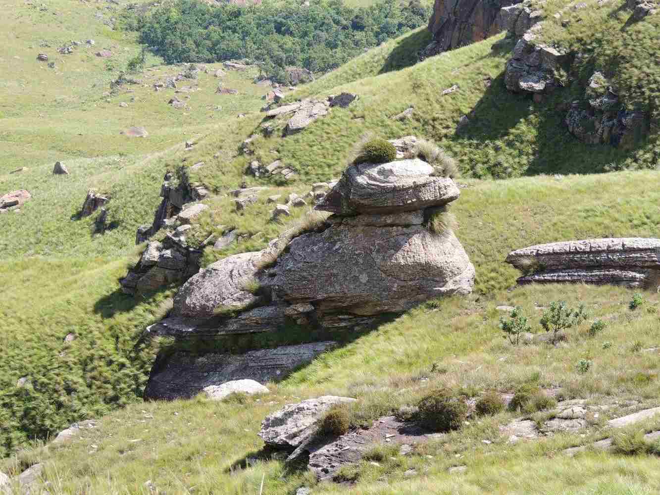 Looking up to the top of the cliffs of Kamberg from our valley position, high up to the left is the outline of a large round rock on the horizon. Nothing very spectacular or noteworthy, unless you have been up there and scout these high peaks of this cliff, then a different story unfolds, very few people know about it or have had the good fortune to have been there. The story goes: