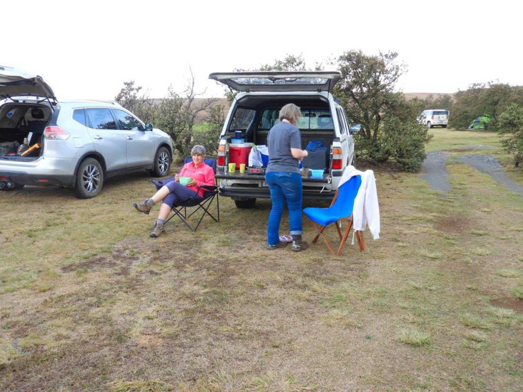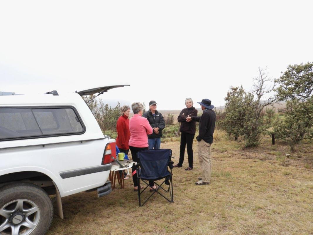 We had 2 hikers coming in for the day from Howick, so as soon as they arrived, and with two hardy hikers from the previous night we set off to Windy Knoll. Passing the points we had discussed as we walked past them in the night.