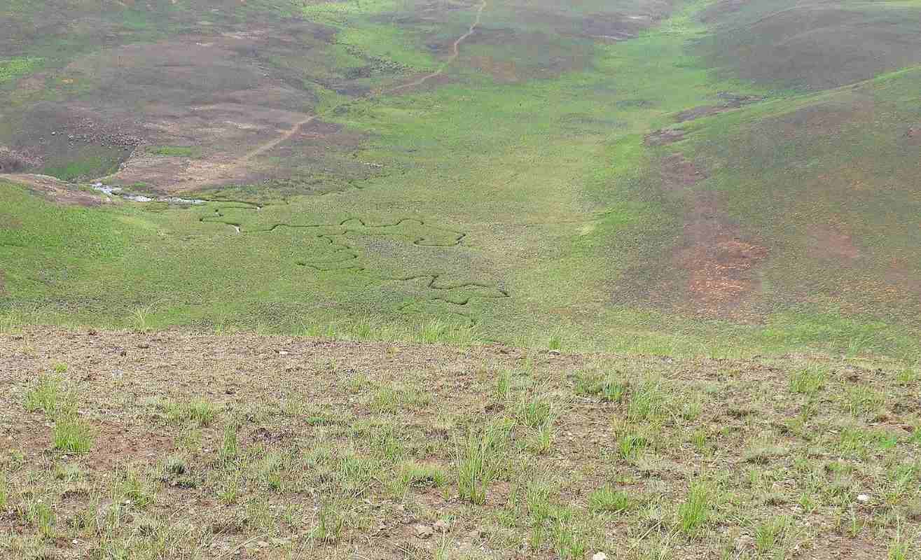 We cut a large circular walk heading towards the old radio tower hill that used to be a marker for the path to Aasvoelskraanz Cave, then dropped down to the river and took the path up homewards. Before we dropped down the hill, from our high vantage point we could see a most amazing Meandering Stream winding across the valley floor. A great view point from which school children could see what a Meandering Stream or river looks like.